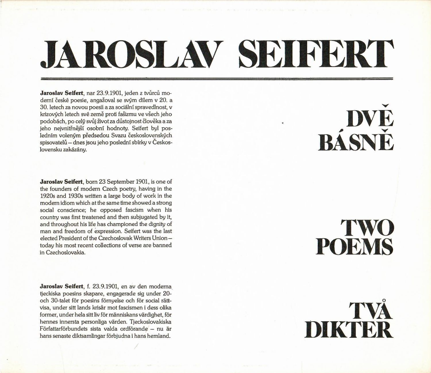 Dvě básně / Two Poems / Tva Dikter.