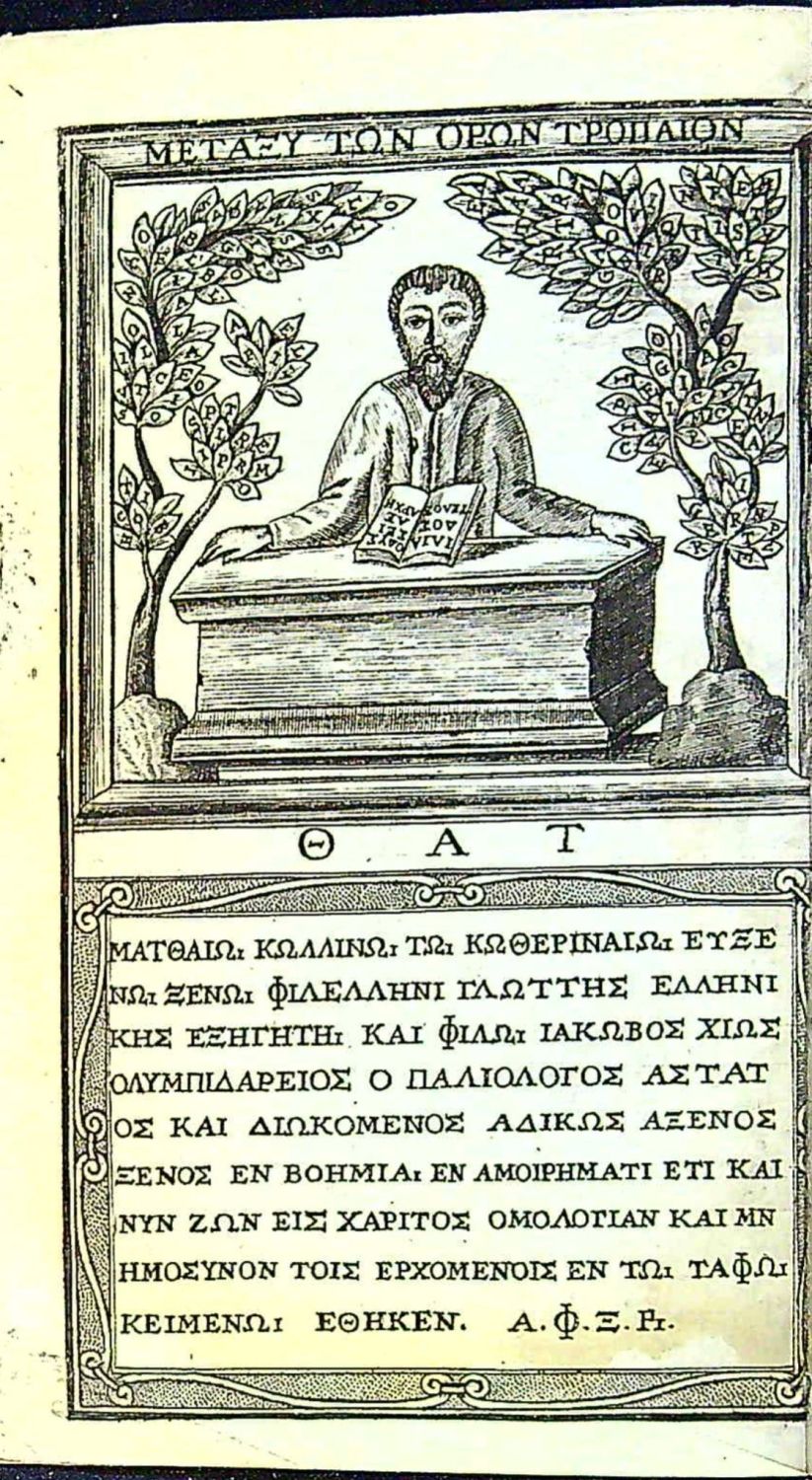 IOANNIS SEMLER SOCIETATIS IESU, ANIMADVERSIONES IN MONVMENTVM SEPVLCRALE, QVOD MATTHEO COLLINO A IACOBO PALAEOLOGO ERECTVM, IN MAGNO COLLEGIO CAROLINO PRAGENSI CONSPICITVR.