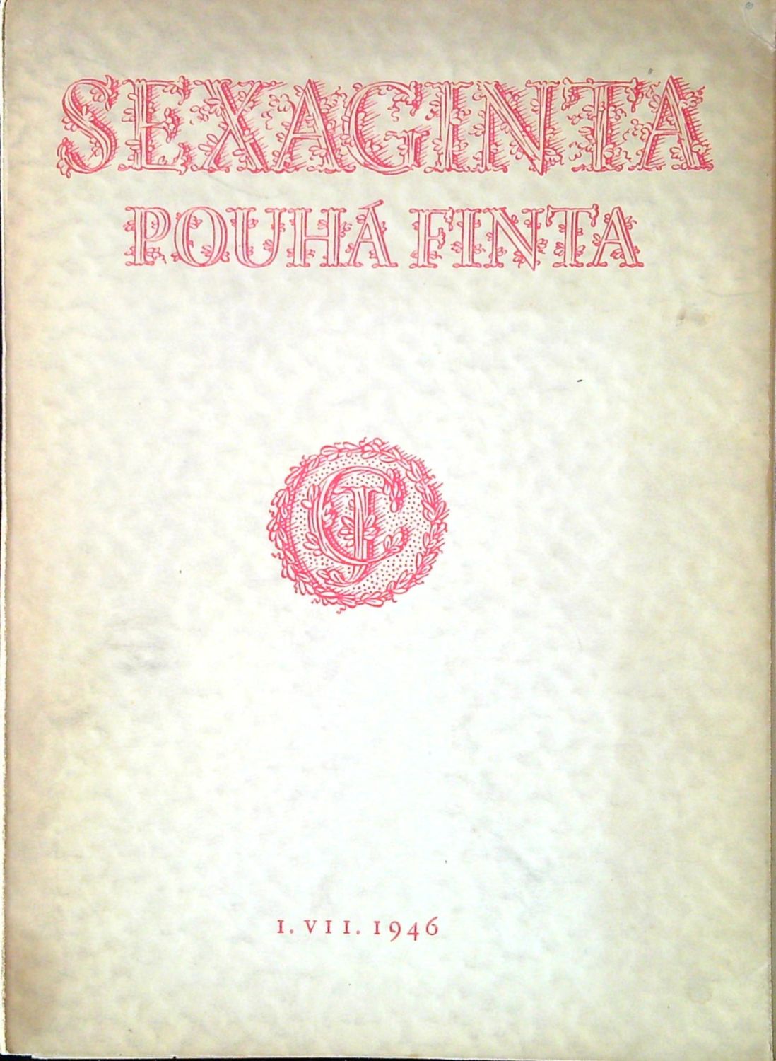 Ex. č. 23 ze 150 vydaných. Upravil O. Menhart a písmem Fournier vytiskla knihtiskárna Práce. Osm příloh, které vytiskl grafický závod Jana Štence. Dvoubarevně tištěný tit. list, v textu několik ilustrací různých autorů (Muzika, Bouda, Hoffmeister, Mrkvička, Tichý ....). Do sborníku mimo jiné přispěli: Ant. Matějček, Jaroslav Seifert, Vladimír Novotný, Jaromír Pečírka, František Čebiš, Jan Loriš, Zd. Wirth, Václav Talich, Eduard Bass ....