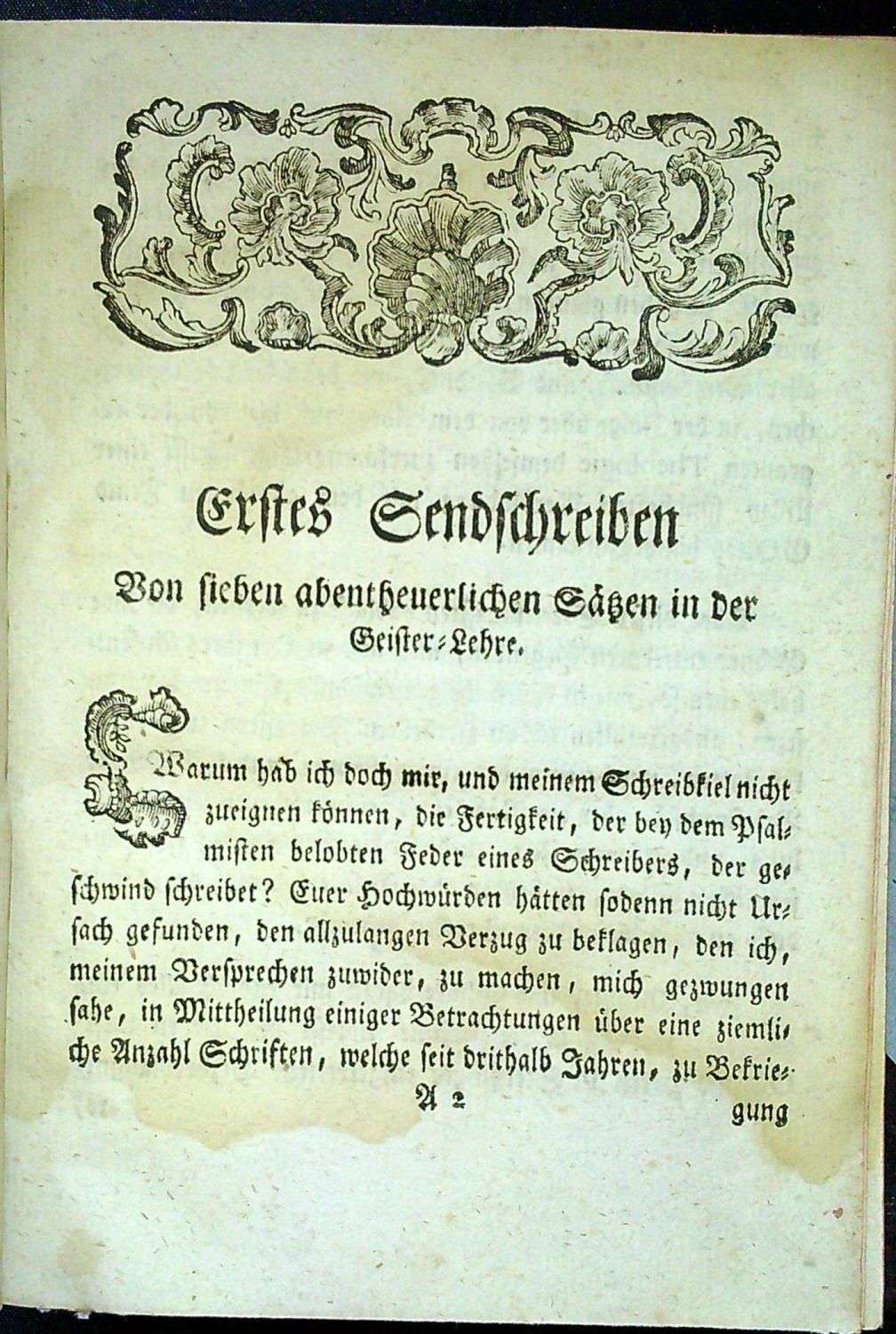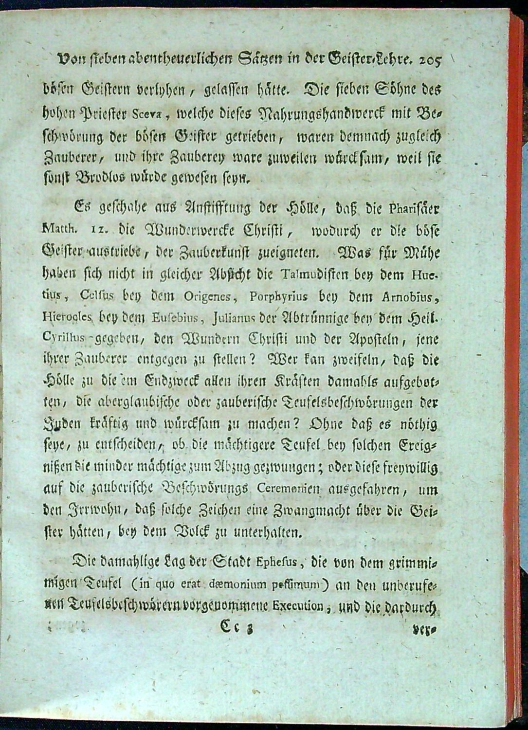 Sieben abentheuerliche Sätze in der Geister=Lehre dieses aufgeklärten Jahrhunderts: I. Die Fürsten, und Mächte der Finterniß ohne alle natürliche Würckungs=Kraft in die Körper: II. Die verworssene Geistere taugliche Werckzeug GOttes zur übernatürlichen Gab, Wunder zu thun: III. Die sichtbare Erscheinungen des Satans, entweder ein leeres Nichts, oder ein Wunderwerck: IV. Die aberglaubische Handlungen ohne teuflische Gemeinschfft, und Mitwürckung, Sünddenfrey: V. Die Hexereyen ohne Bündniß mit dem Satan, ein ohnsträflicher Aberwitz: VI. Die Zauberreyen, würckungslose Unternehmen, oder unschuldige Charlatanerie, und Grossprecherey: VII. Der teuflische Besitzungen jetziger Zeiten, entweder Betrug, oder Kranckheit, oder Einbildung: Aber Von allem, was in der Religion Heiliges, in der Gottesgelerthheit ohntriegliches, in der Historie glaubwürdiges, in der Rechtswissenschafft bewährtes, und in der Weltweißheit gründliches anzutreffen, als unächt mißkennet, und verworffen, durch verschiedene S