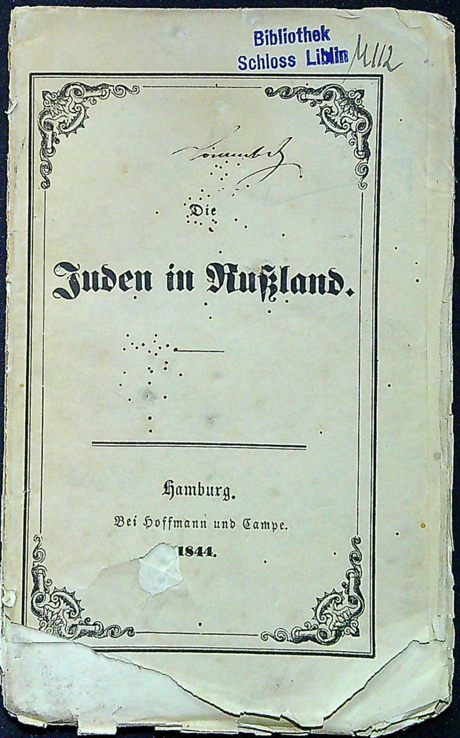 Brožura s původní pap. obálkou, přední strana obálky při spodním okraji částečně utržená, papír ve hřbetu potrhaný, při vnějším okraji lehce pomačkaný, knižní blok neoříznutý. Na přední straně obálky při horním vnějším okraji staré vlastnické razítko "Schloss Liblin" (zámek Libín u Rokycan).