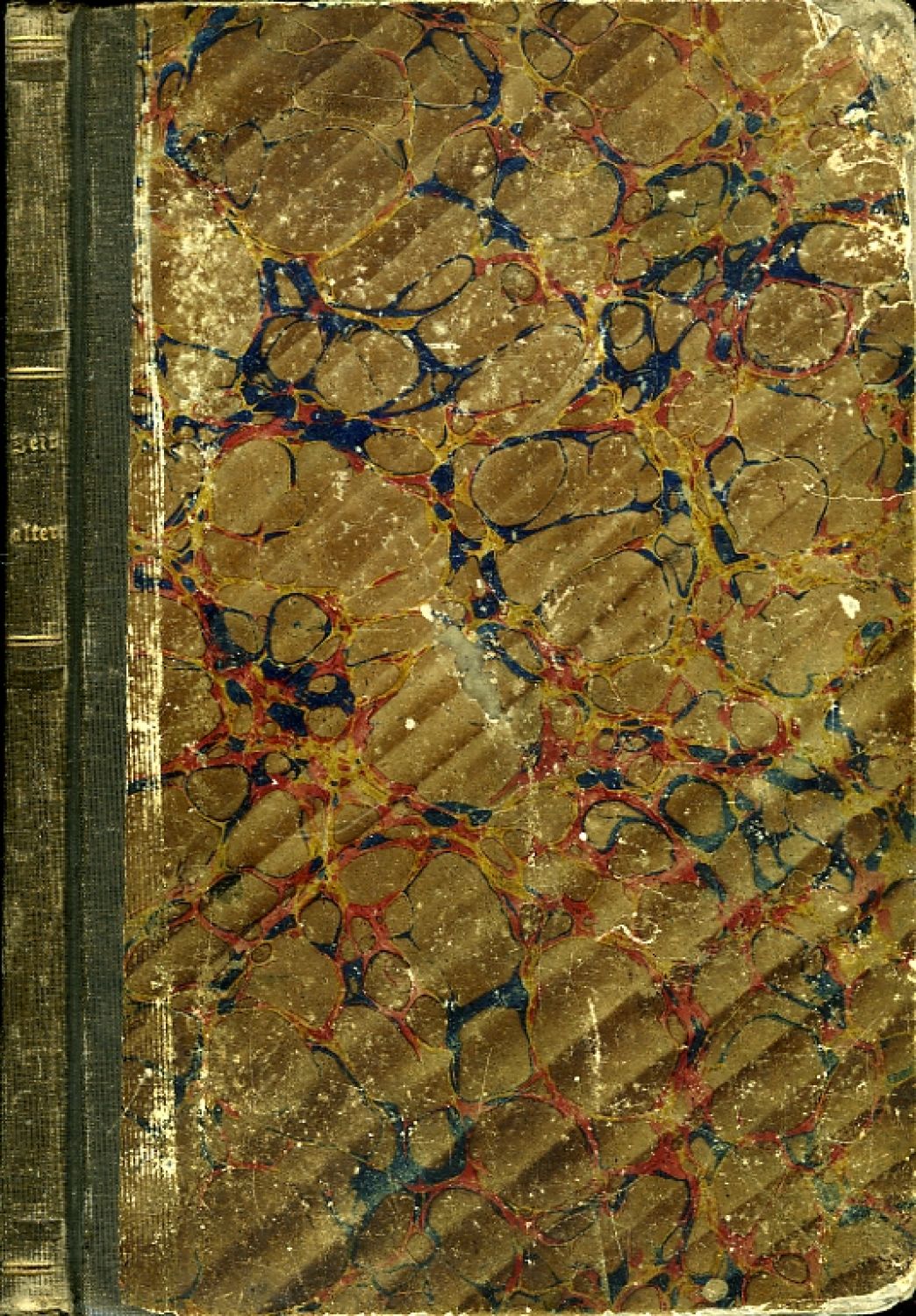 Dobová kartonová vazba s deskami potaženými mramorovaným papírem, plátěný hřbet s tlačeným a zlaceným názvem. Desky odřené, naražené rohy, průběžně hnědé skvrnky. Na tit. listu a na předsádce starý vlastnický přípis inkoustem, na titulu též vepsáno jméno autora.
