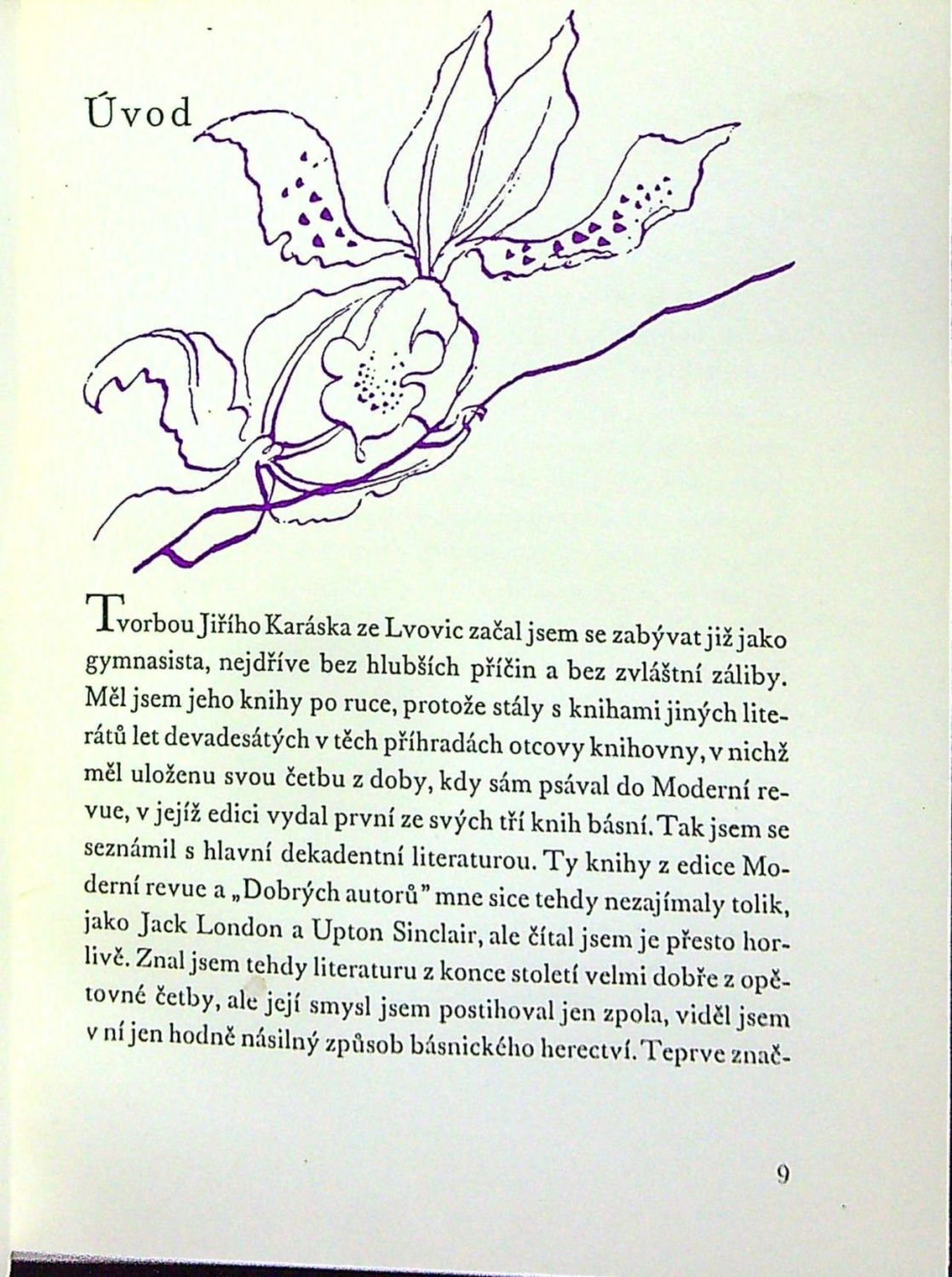 Jeden ze sta exemplářů tištěných na papíře dílovém (krom toho bylo 100 ex. vytištěno na Pannekoeku a číslováno). V tiráži podpis autorův. Dobová plátěná vazba, na přední desce tlačený a zlacený název, na předním přídeští dřevorytové ex libris pro V.P.