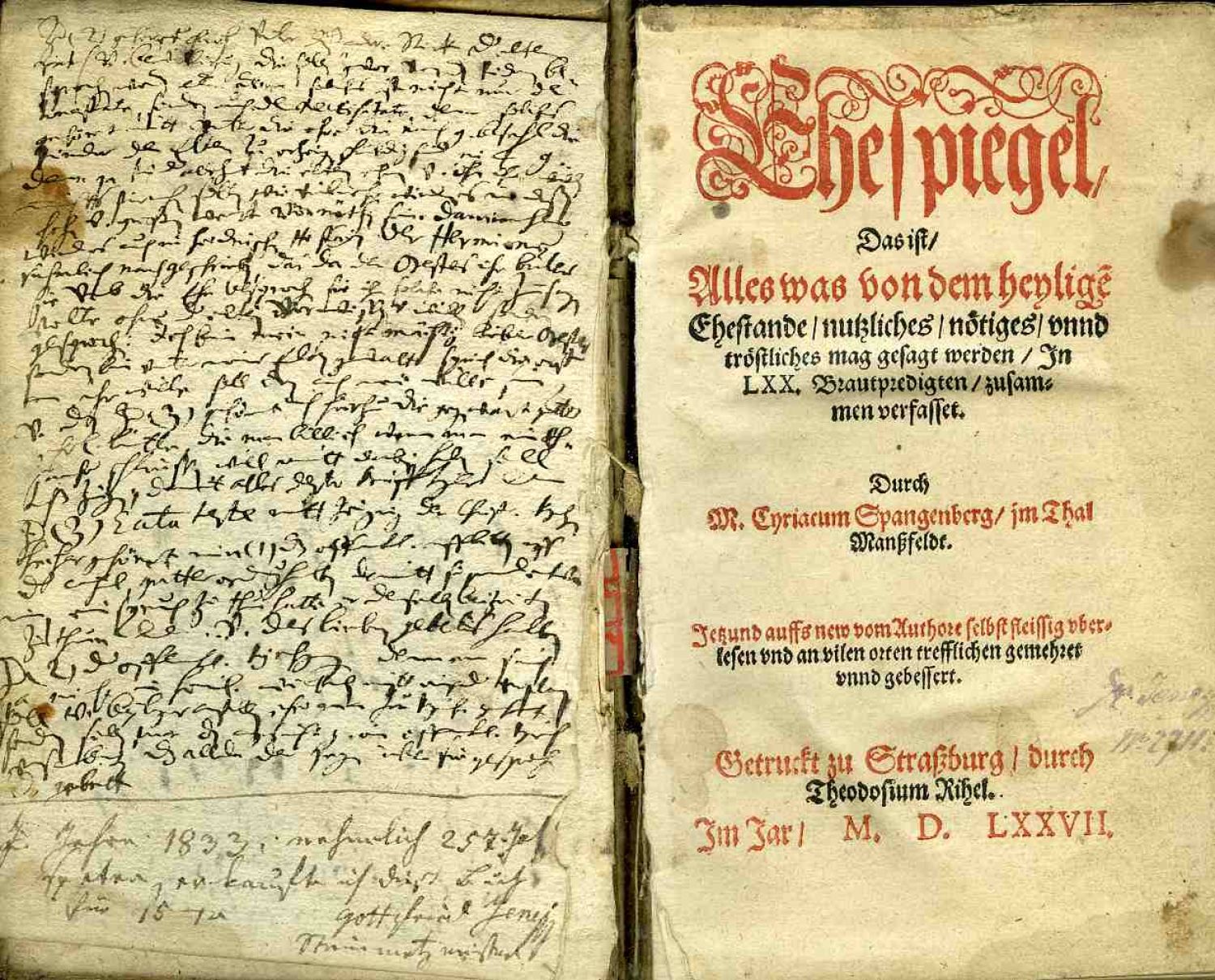 Ehespiegel, Das ist/ Alles was von dem heylige[n] Ehestande / nutzliches / nötiges / vnnd tröstliches mag gesagt werden / Jn LXX. Brautpredigten / zusammen verfasset. ... Jetzund auffs new vom Authore selbst fleissig vberlesen vnd an vilen orten trefflichen gemehret vnnd gebessert.