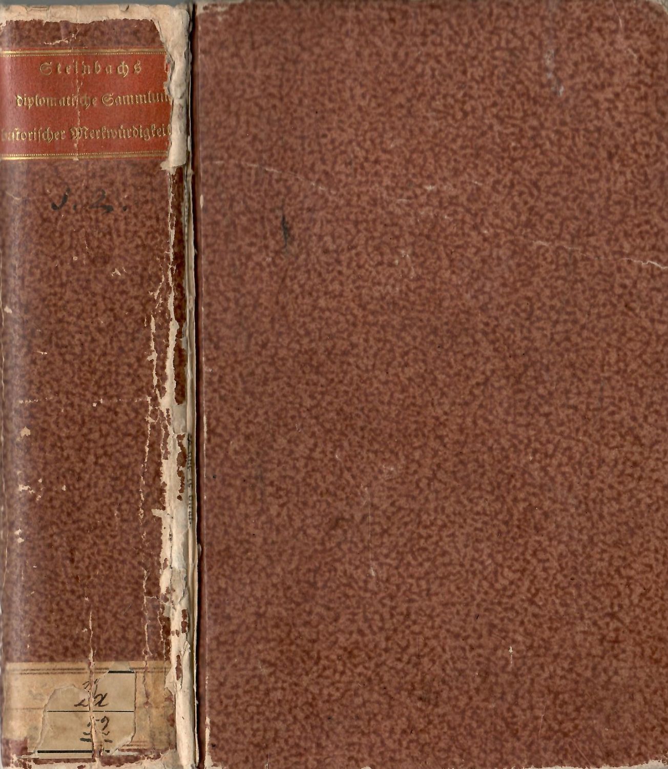 Dobová kartonová vazba potažená mramorovaným papírem, při horním okraji hřbetu dobový červený kožený štítek s tlačeným a zlaceným názvem. Vazba ohmataná a místy odřená, naražené rohy, při spodním oékraji hřbetu nalepen starý pap. knih. štítek, papír při horním i spodním okraji hřbetu chybí proužek pap. pokryvu, podél hřbetu přední strany vazby papír místy potrhaný, místy chybí. Na předním přídeští ex libris děčínské Thun-Hohensteinské knihovny, která byla majitely rozprodána v několika aukcích ve 30. letech 20. století.