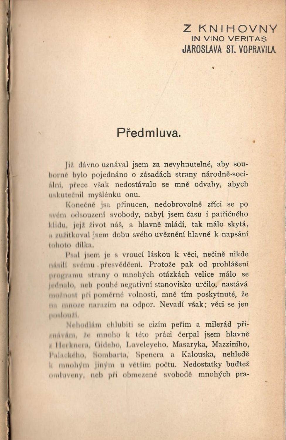 V úvodu předmluva autorova datovaná ve Vídni dne 31. prosince 1901. Vytiskla knihtiskárna Jos. B. Zápotočný v Rokycanech. - Plátěná vazba imitující kůži. Na začátku předmluvy a na konci celkem tři proven. razítka "Z knihovny In vino veritas Jaroslava St. Vopravila".
