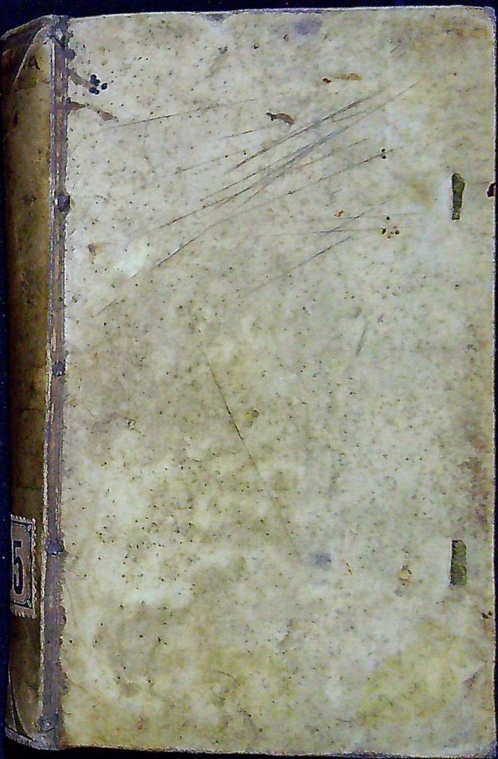 Dobová pergamenová vazba, barvené ořízky, na obou deskách nepatrná torsa vázacích tkanic. Při horním okraji hřbetu inkoustem první slova názvu knihy, ve spodním jeho okraji starý pap. štítek s číslem. Vazba ohmataná a zašpiněná. Na předním přídeští černým perem proven. přípis z 18. století, papírový štítek z 19. století "Eingetragen der Bibliothek der Freimaurer Loge" a razítko z počátku 20. století "Bibliothek der Loge zu Münster i W", na rectu listu )(II stejné razítko. Chybí titulní list, list )(VI při spodním okraji podlepený (cca 1 cm x O,5 cm), list )(10 podlepený při vnějším okraji a strana 9 podlepená při vnějším spodním okraji, místy papír lehce zahnědlý a na několika listech drobné hnědé skvrnky.