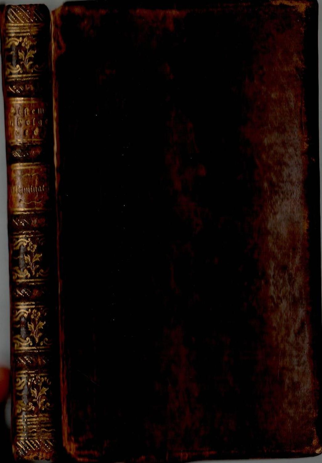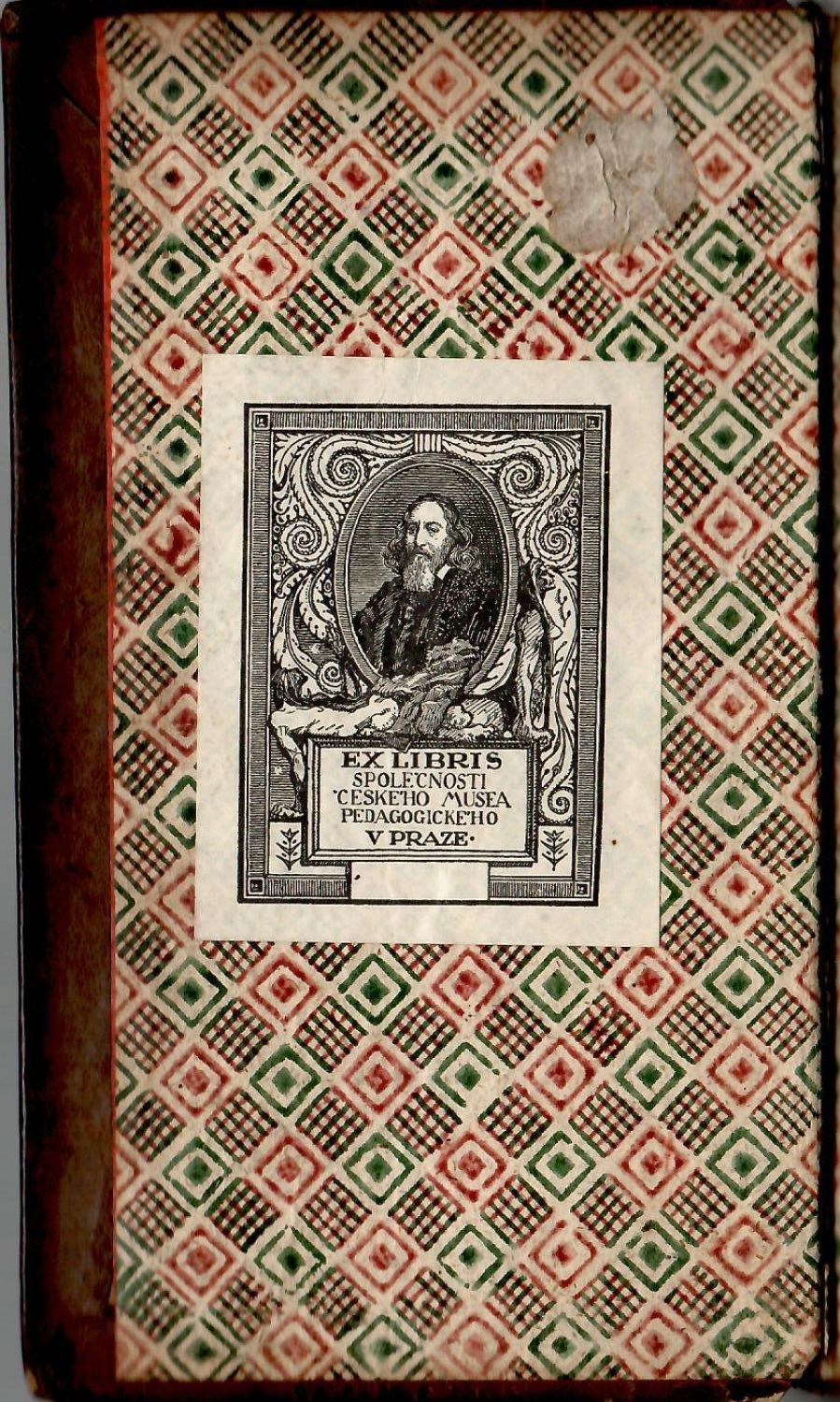 Dobová vazba z temně hnědé hověziny, ve hřbetu 5 vazů, ve druhém a třetím poli původní kožené štítky s tlačenými a zlacenými názvy, v ostatních polích tlačené a zlacené rostlinné ornamenty, červeně barvené ořízky, na přídeštích a předsádkách dobový olejový papír. Desky vazby u hřbetu zčásti prasklé, na předním přídeští nalepeno ex libris z 20.let 20. století "Společnosti Českého musea pedagogického", na tit. listu a v textu několik razítek Musea ze stejných let a několik razítek zčásti vybledlých Strahovského kláštera z konce 19. století.