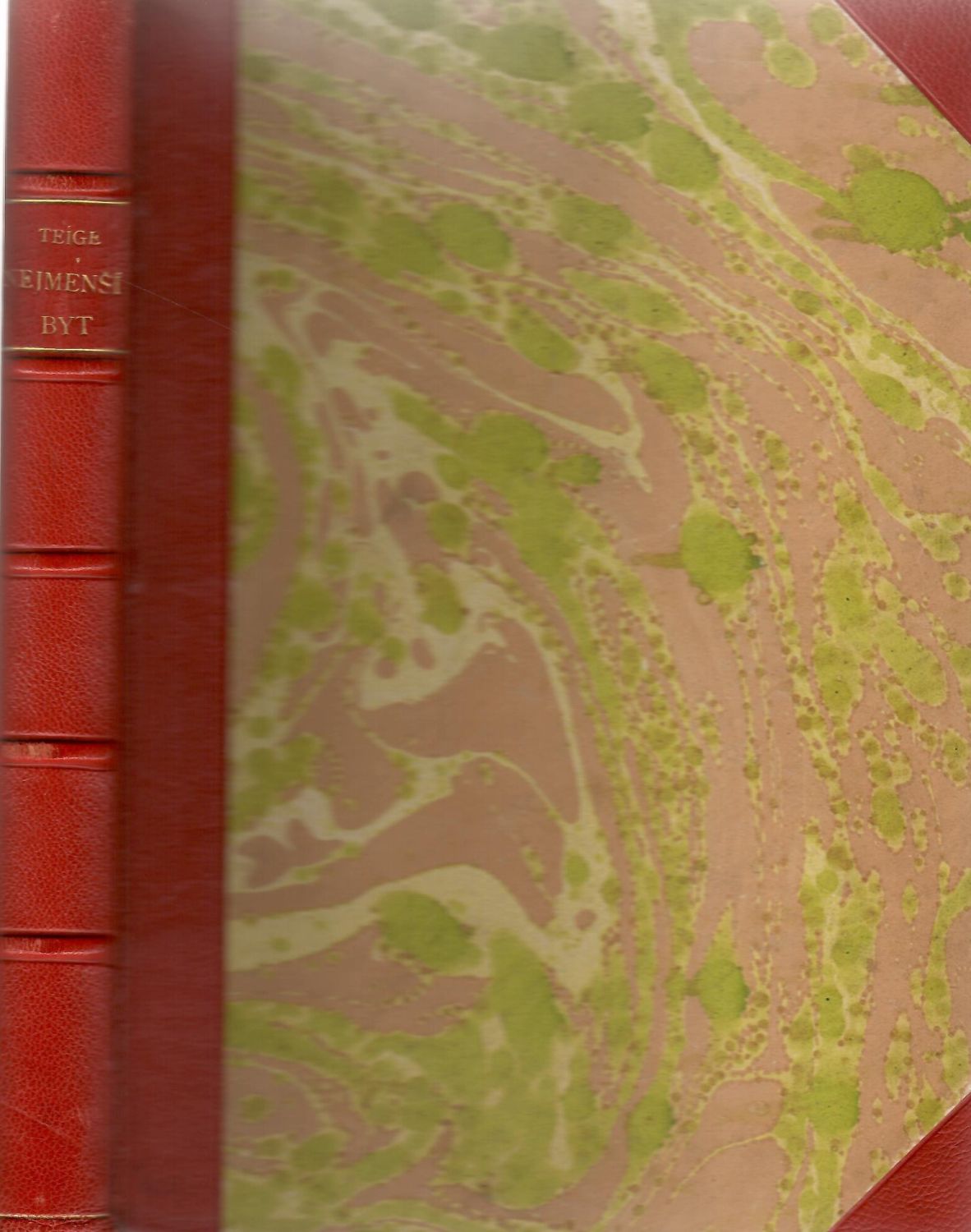 Typografická úprava autora. - Desky potažené škrobovým papírem, červený kožený hřbet a nárožnice, na hřbetě pět nepravých vazů a zlac. věcný název, zlac. svrchní ořízka. Obálka chybí, jinak výborný stav.