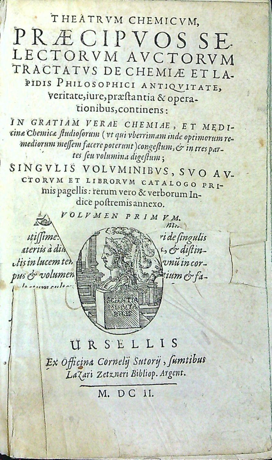 THEATRVM CHEMICVM, PRAECIPVOS SELECTORVM AVCTORVM TRACTATVS DE CHEMIAE ET LAPIDIS PHILOSOPHICI ANTIQVITATE, veritate, iure, praestantia & operationibus, continens: IN GRATIAM VERAE CHEMIAE, ET MEDIcinae Chemica studioforum (vt qui vberrimam inde optimorum remediorum messem facere poterunt) congestum, et in tres partes seu volumina digestum; SINGVLIS VOLVMINIBVS, SVO AVCTORVM ET LIBRORVM CALALOGO PRImis pagellis: rerum vero & verborum Indice postremis annexo. VOLVMEN PRIMVM (ze 4 dílů)