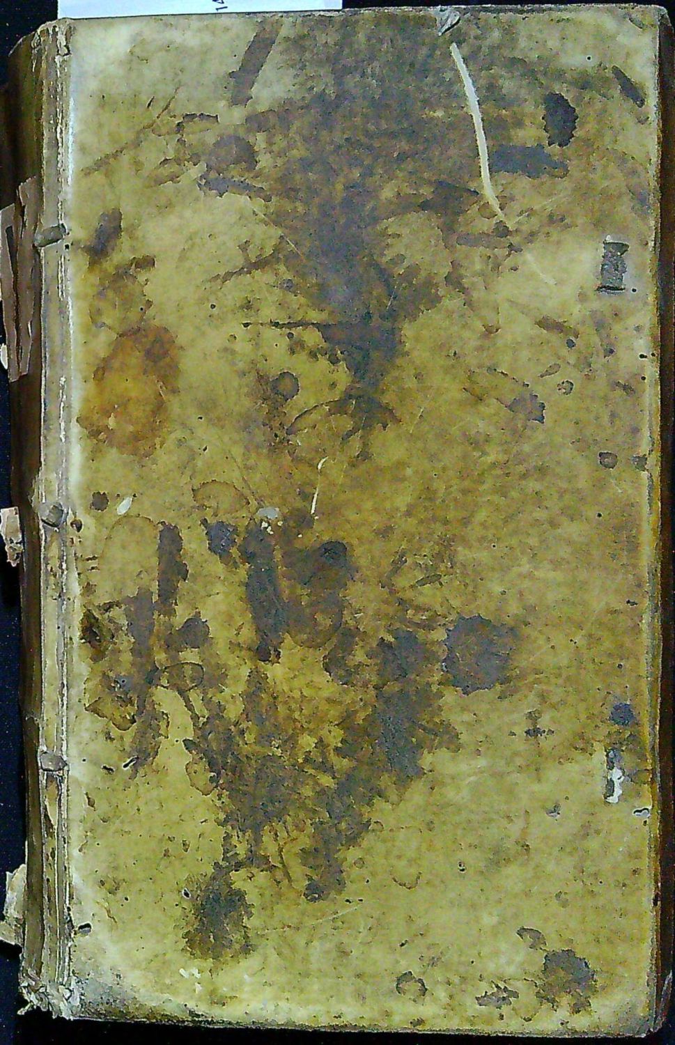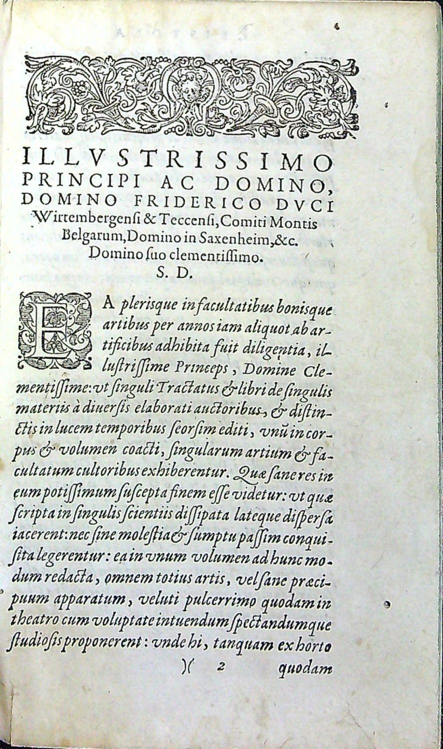 Dobová pergamenová vazba, zašpiněná, odřená a při spodním okraji hřbetu natržená. Na tit. listu po obou stranách viněty vystřižený papír (odstraněné provenience ?), ve spodní třetině tit. list odtržený od knižního bloku a pomačkaný. Papír místy zahnědlý, v textu několik rkp. marginálií a značek, na některých listech oslí uši, papír místy zahnědlý.