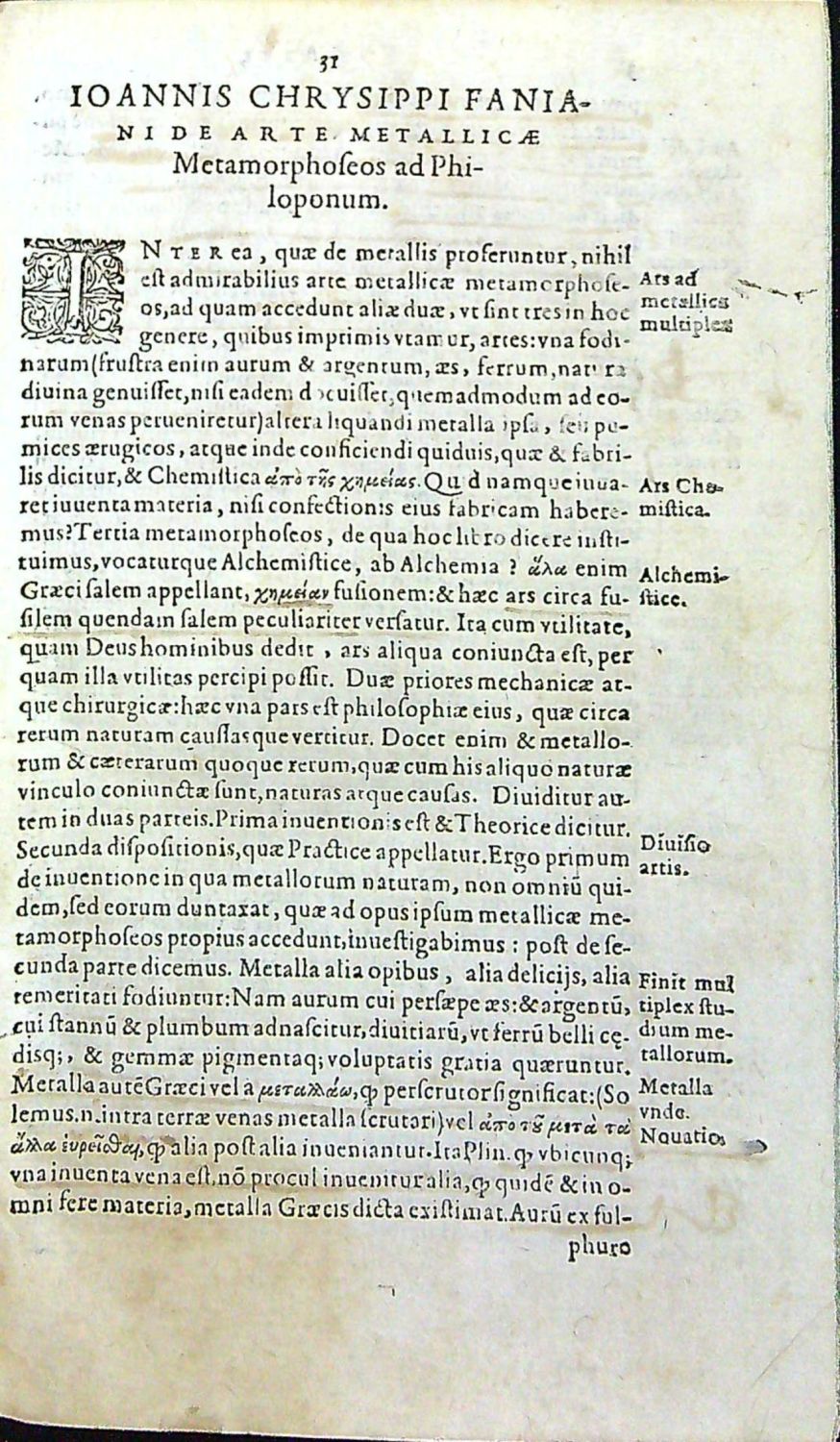 Živá záhlaví, tištěné poznámky po stranách, na tit. listu viněta s vyobrazením Minervy (signet Lazara Zetznera), pásové lišty z ornamentů, konturové iniciály na ornamentálním pozadí zalomené do výše 3-4 řádků, jednoduché linky, tučně tištěné versálky ve výši 2-3 řádků, viněty, pásové vlysy. Od strany 255 druhá část. Na straně 233, 235 a 248 dřevoryty v textu s vyobrazením tavící pece a pomůcek používaných při tavení. Za titulním listem na dvou listech úvodní slovo L. Zetznera.