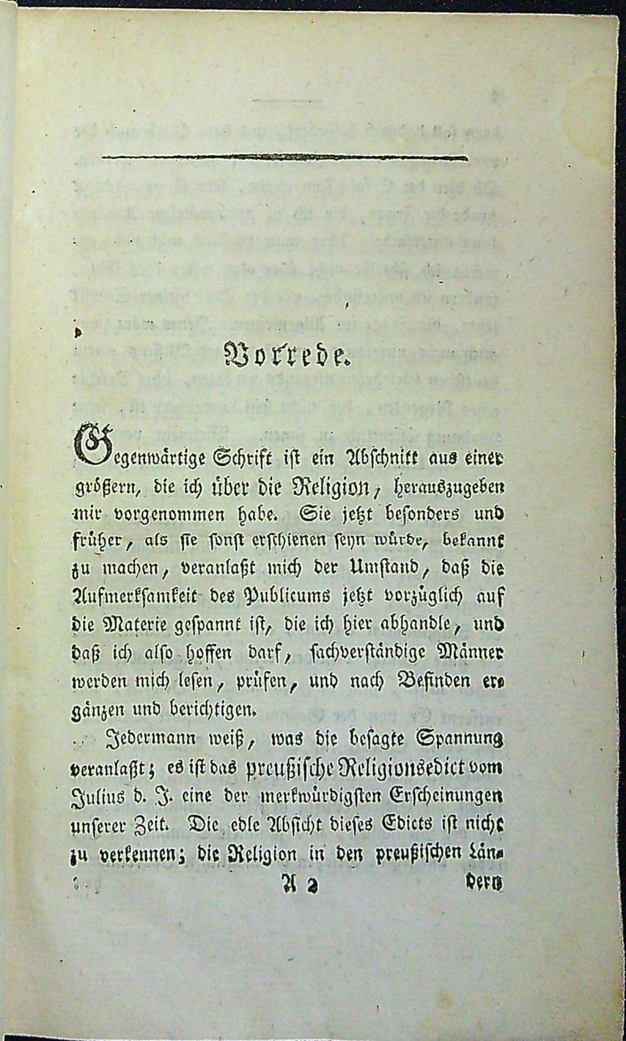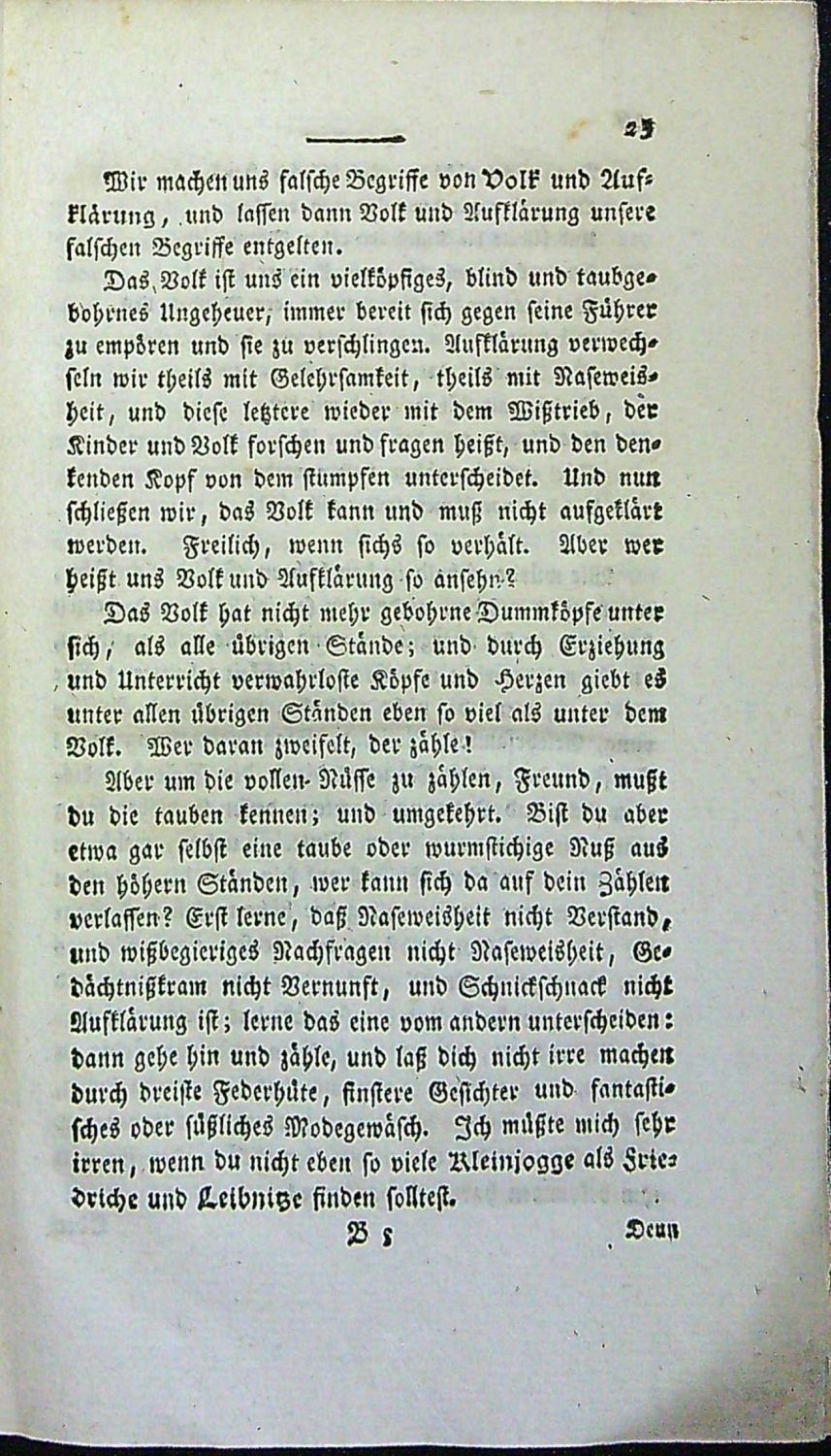 Tištěno švabachem, uprostřed horního okraje stran mizící linka, tučně tištěné plné iniciály ve výši 1-2 řádků. - Dobová pap. obálka přes hřbet z větší části přelepená šedou pap. páskou. Na tit. listu staré razítko berlínské zednářské lóže "Loge zu den drei Weltkugeln", na předním přídeští nalepeno mědirytinové ex libris Gustava Partheye. Obálka lehce zašpiněná, knižní blok neoříznutý, na několika listech papír lehce zkrabatělý, místy oslí uši.