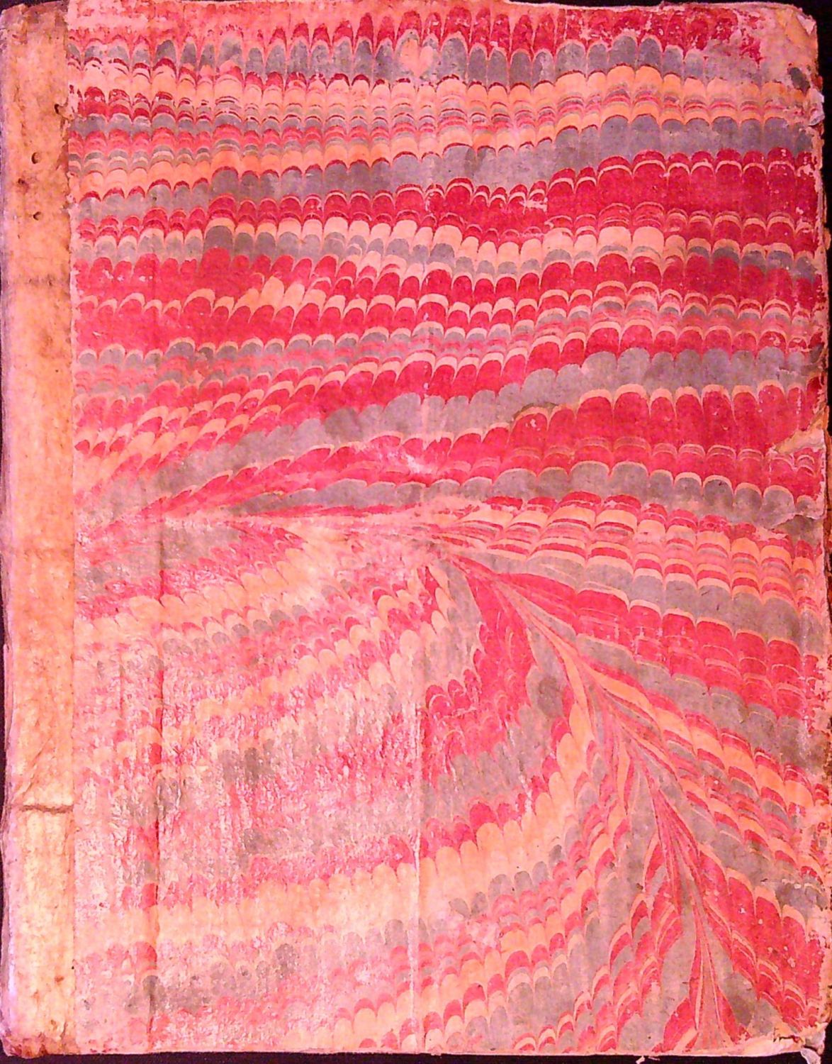 Dobová vazba s kartonovými deskami potaženými katunovým papírem, pergamenový hřbet. Vazba ohmataná a zašpiněná, papírový pokryv při okrajích potrhaný. Na předním přídeští stará knih. čísla, ve hřbetu torso pap. štítku. Naražené rohy, na tit. listu starý proven. přípis perem z 18. století. Papír zahnědlý, tu a tam drobné hnědé skvrnky.