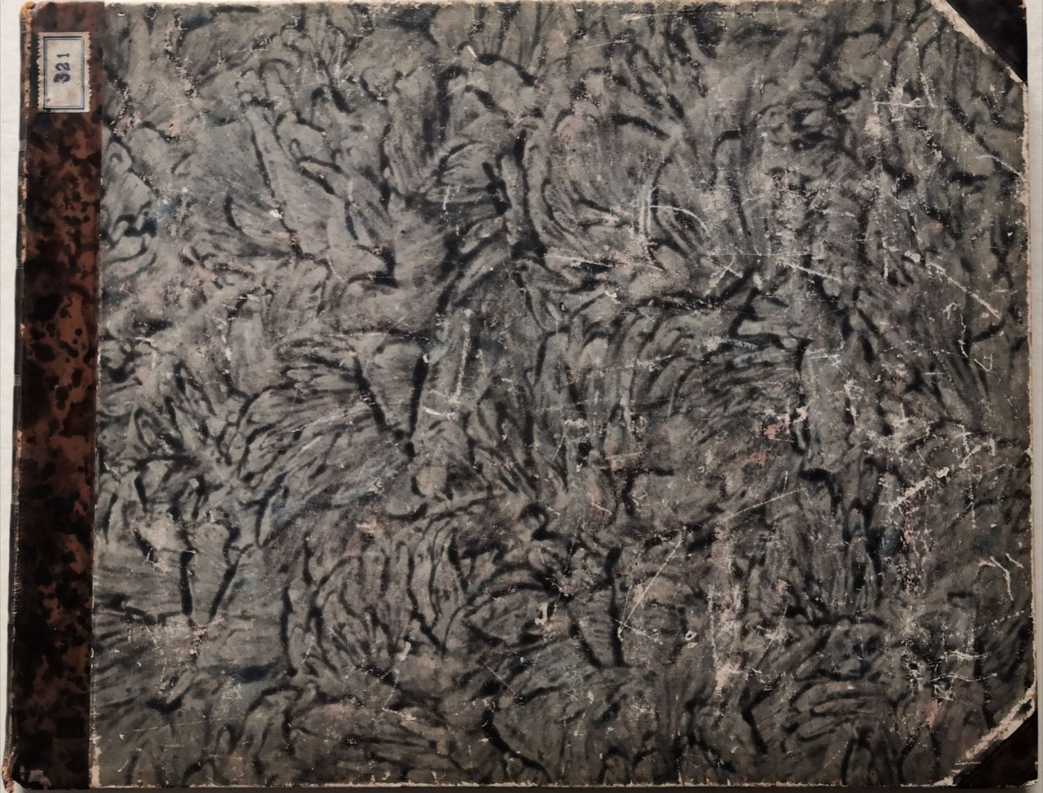 Dobová polokožená vazba, kartonové desky potažené olejovým papírem s koženým hřbetem a nárožnicemi. Ve hřbetu šest polí oddělených zlaceným a tlačeným zdobným pásem, ve druhém poli tlačený a zlacený název, v ostatních polích tlačená a zlacená květina, při horním i spodním okraji hřbetu pás dvojitý. Vazba lehce ohmataná a místy mírně odřená, na přední desce nalepený starý pap.knih. štítek. Na titulním listu, na jeho rubu a při spodním okraji listu 17 staré razítko Kabinetu pro theorii a dějiny umění ČSAV v Praze (přiloženo potvrzení Ústavu dějin umění Akademie věd v Praze z 20.1. 2016, že kniha byla dne 5.6. 1980 na základě schváleného Soupisu publikací k vyřazení z knihovny vyřazena). Při horním vnitřním okraji listů hnědé skvrny způsobené vlhkostí.