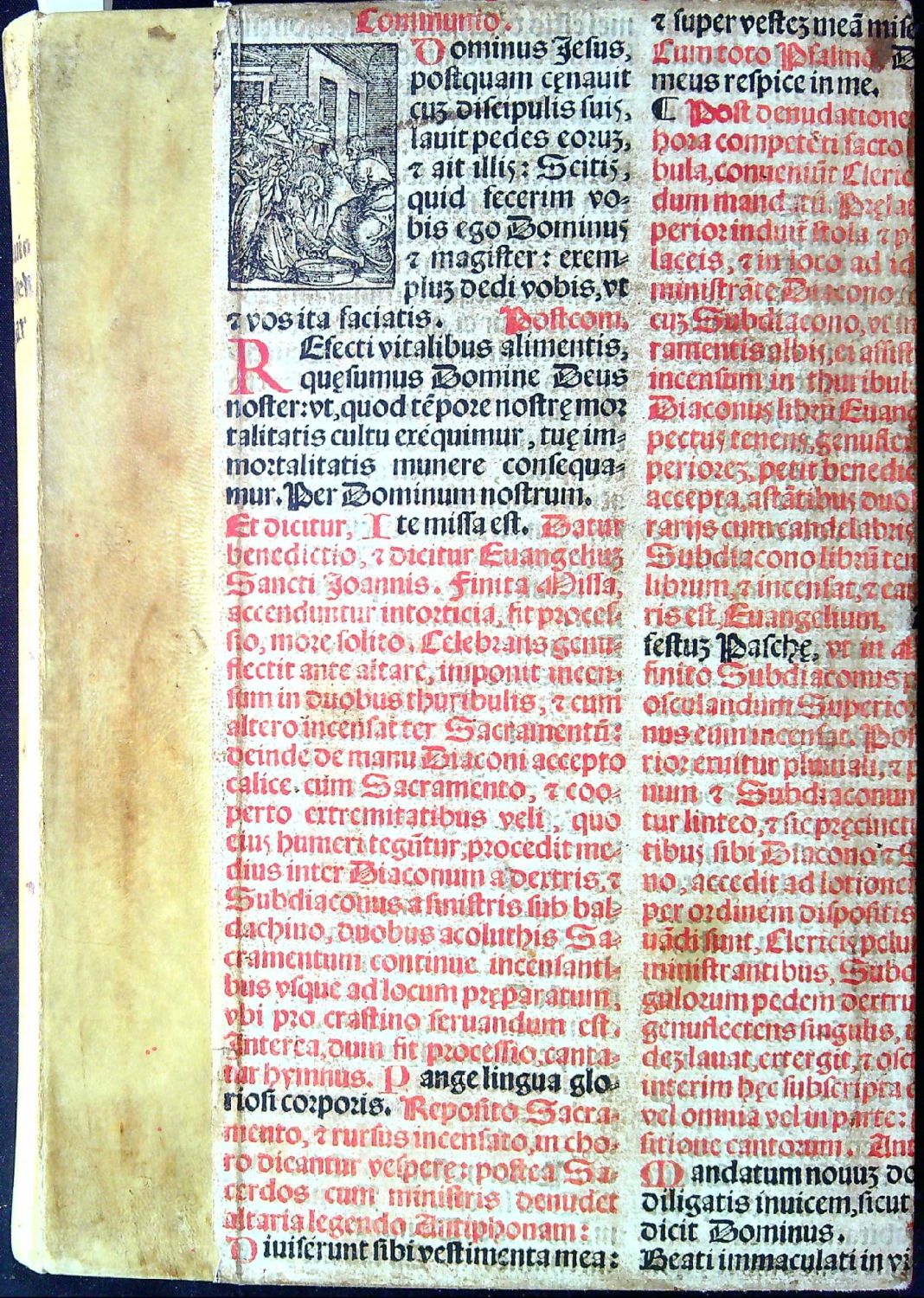 Pergamenová vazba, na přední i zadní desce nalepený pokryv ze dvou listů neurčené inkunábule tištěné na pergamenu s jedním dřevorytem. Na předsádkách i přídeštích papír z 20. století, nověji šitý kapitálek. Na foliu LXXI-LXXII drobná světle hnědá skvrnka, folio XCVIII uprostřed horního okraje citlivě restaurované, jinak ve stavu velmi dobrém.
