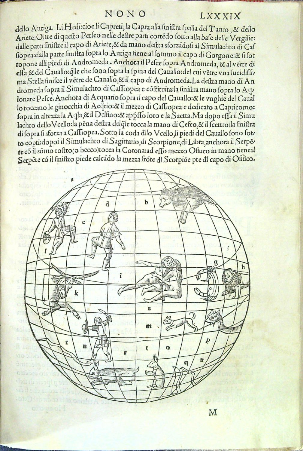 Červeno-černě tištěný titulní list v dřevořezové borduře, ve které je v horním a spodním poli vyobrazeno několik postav v bojovém postoji (ve spodním poli mezi Juliem Caesarem a Alexandrem Velikým na koních Filip II. Makedonský s mečem; v poli horním mezi jezdci na koních s iniciálami S.F. a A.C. portrét Cicera ve vavřínovém věnci. Živá záhlaví, latinská paginace listů, kolofon na recto folia BB6, rejstřík tištěný ve dvou sloupcích. V textu řada konturových a plných iniciál v jednoduchém rámečku s vyobrazením hlav různých mužů, případně s rostlinným či ornamentálním pozadí zalomených do výše 3-6 řádků. Tučně tištěné versálky ve výši 3 řádků. Na rubu titulního listu tištěná poznámka editora a překladatele Francesca Luci zvaného Durantino. (První italské vydání vyšlo v jeho překladu roku 1524).