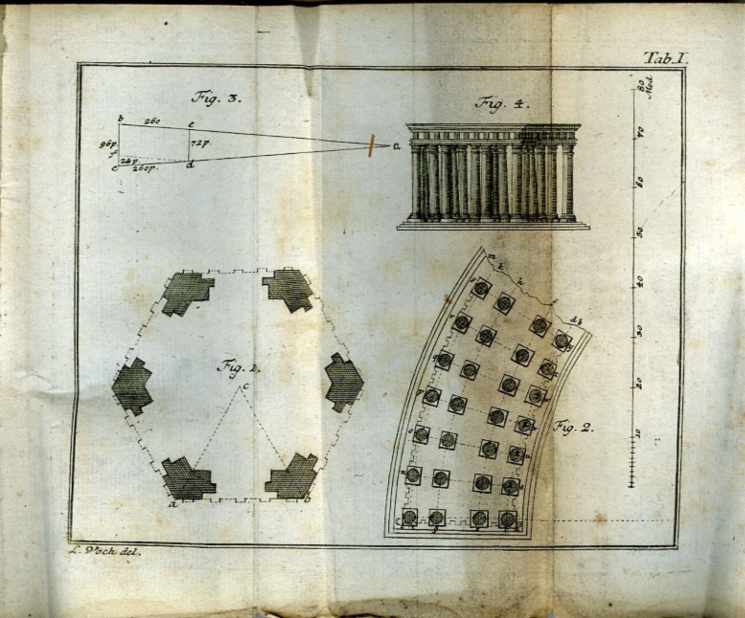 Impresum na tit. listu pod ozdobnou tyčí, vlysy z ornamentů, uprostřed horního okraje stran drobné tiskařské ozdůbky, koncová viněta, dvě tabulky na rozkládací str. 89-90. - Vazba potažená mramorovaným papírem lehce odřená, na tit. listu drobné hnědé skrvnky, první rytina mírně zahnědlá a částečně odlepená, spolu s druhou též ušpiněná a pomačkaná.