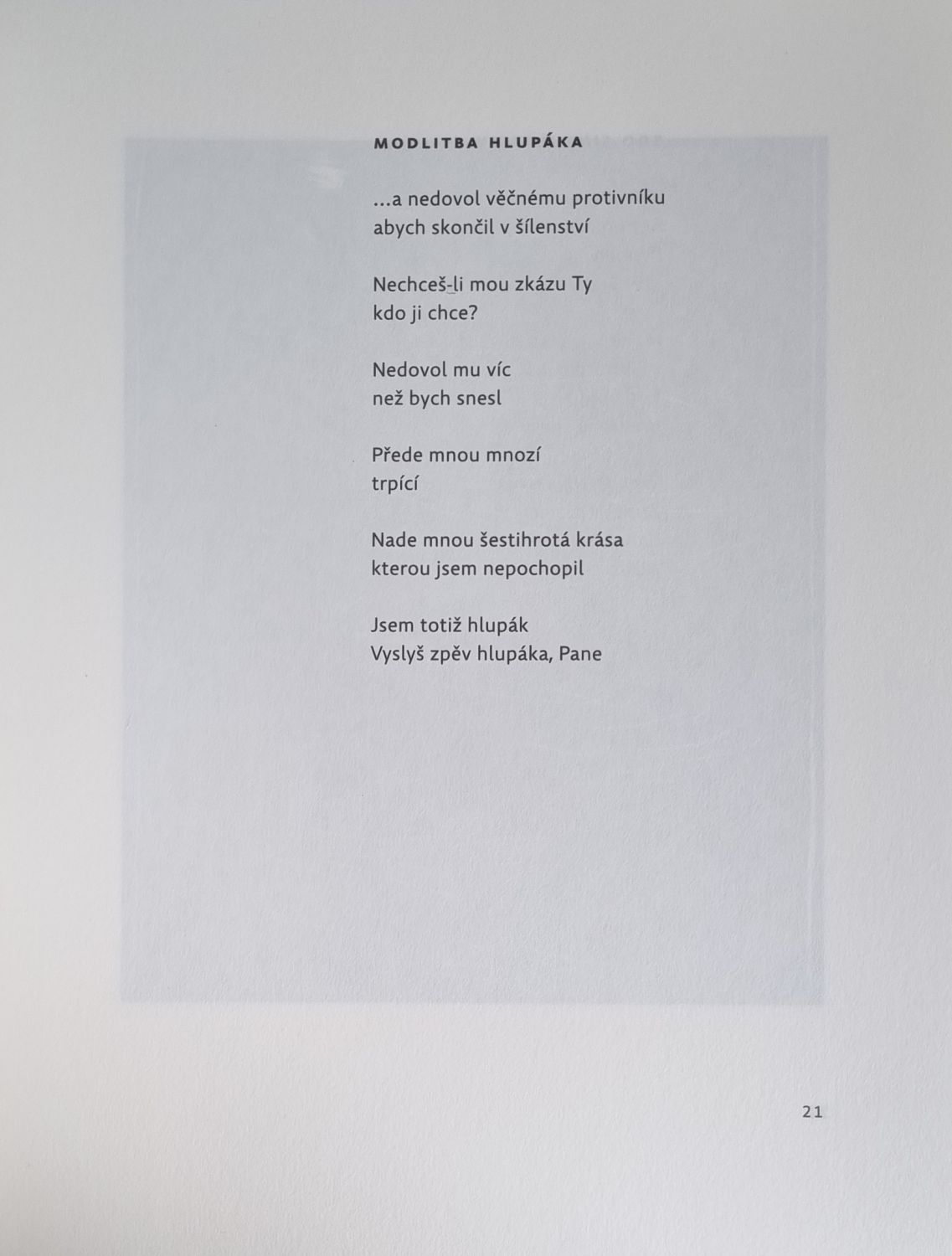 Ex. č. 26 z 50 vydaných, které ofsetem písmem Comenia Sans na papír Excudit V1 vytiskl Jaroslav Janďourek a grafické přílohy knihtiskem Jaromír Šťoural (Lis v lomu). Básně vybral autor, k vydání připravili a graficky upravili Jindřich Zeithamml a Jaromír Šťoural. V tiráži podpis básníkův. - Původní ochranné kartonové pouzdro.