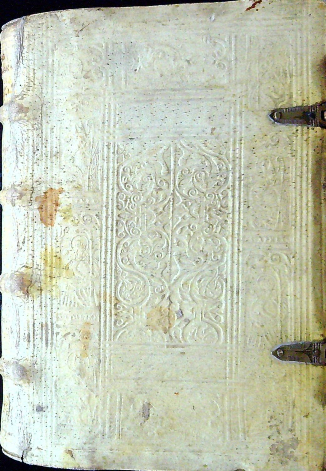 Na tit. listu dřevořezová viněta, vstupní iniciála na rostlinném pozadí zalomená do výše 7 řádků, živá záhlaví, tištěné poznámky po stranách, tučně tištěné versálky ve výši dvou řádků. Pouze 1. díl ze dvou vydaných. - Dobová renesanční vazba z dřevěných destiček potažených světlou vepřovicí zdobenou slepotiskem. Na obou deskách dvojitý rám, vnější rám je zdobený portréty církevních patriarchů, uvnitř rámu vnitřního kompozice z ornamentů, na přední desce dva původní tepané kovové úchyty, na desce zadní dvě původní kožené přezky s tepanými kovovými sponami. Na přední předsádce provenienční přípis "Hic dilectus Libelus emendabat Carolus de Camenicz A.D. MGMLIII." Na tit. listu "Ulrich Leyrer, Capellanus Thierhauptensis 1845". (Thierhaupten, městečko poblíž Augsburgu v Bavorsku).
