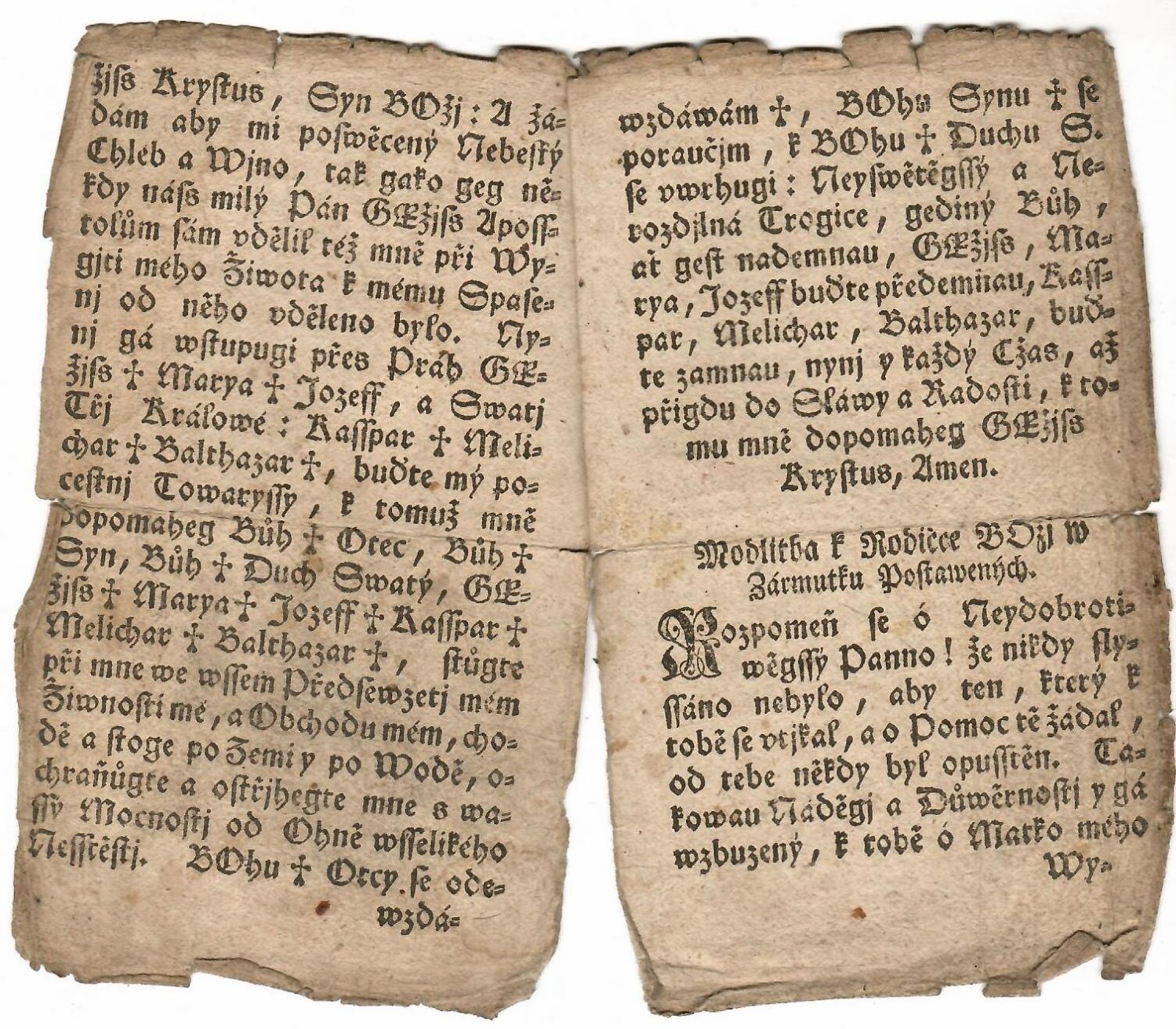 Welmi nábožná Modlitba, kterážto w Regně Kolině w Hlawnjm Kostele (kdežto Těla Swatých Třjch Králůw odpočjwagj) s zlatými Slowy popaná stogj.