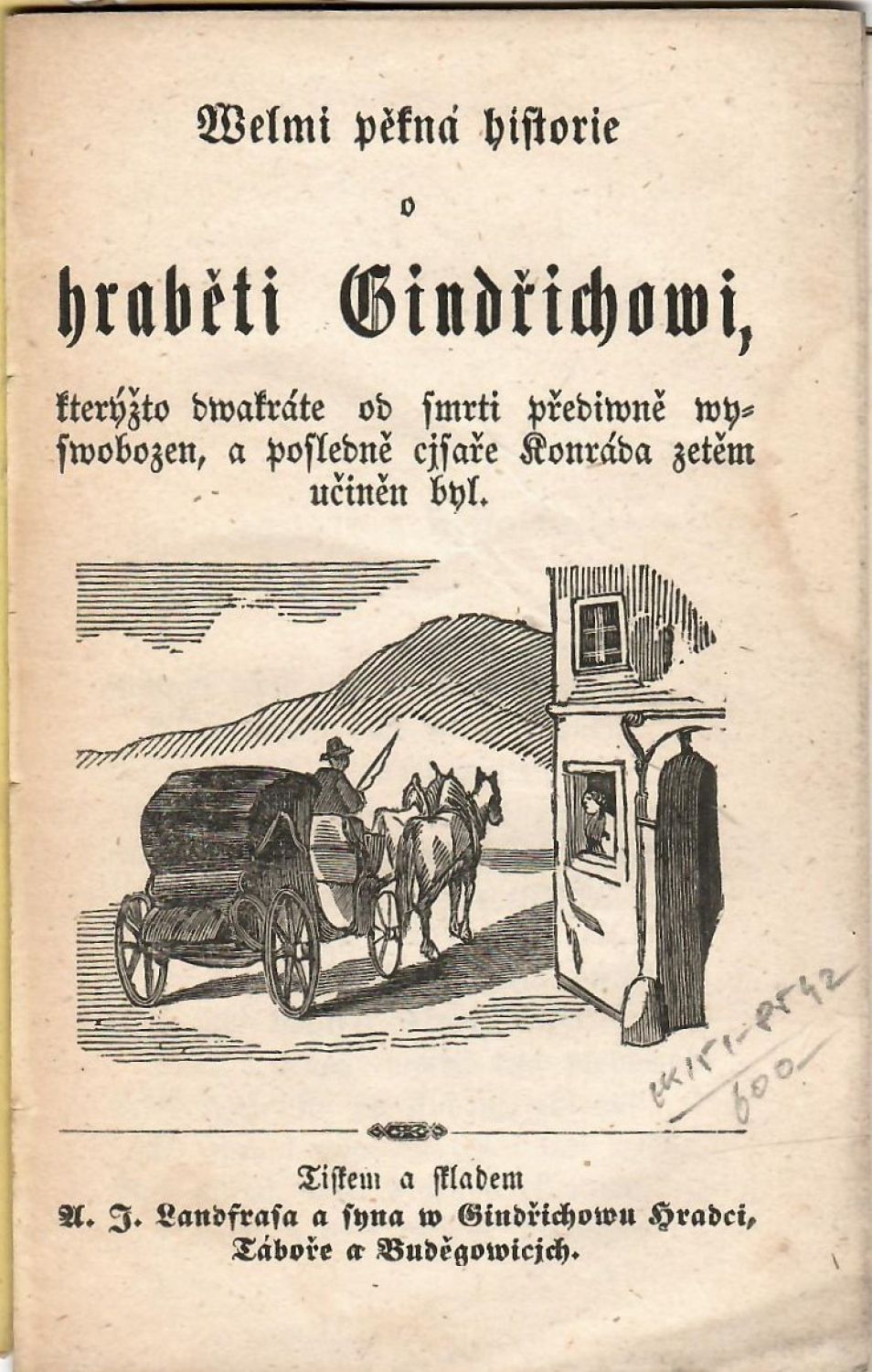 Tištěno švabachem, na titulním listu viněta a v textu tři dřevorytové ilustrace. - Původní pap. obálka, ve které je volně vložený knižní blok. Papír na zadní straně obálky při vnitřním spodním okraji přehnutý, při horním okraji hřbetu natržený.