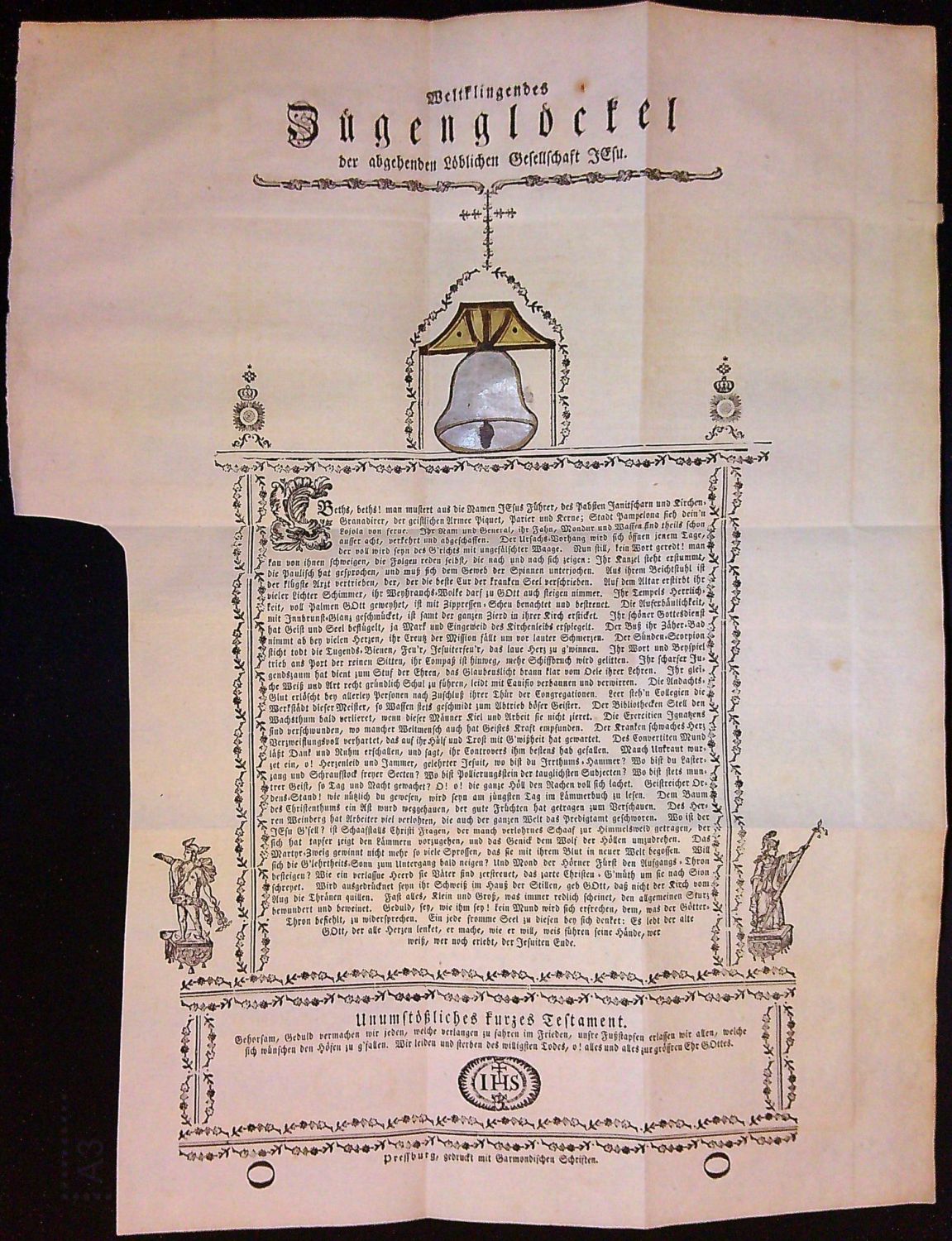 Weltklingendes Zügenglöckel der abgehenden Löblichen Gessellschaft JEsu.