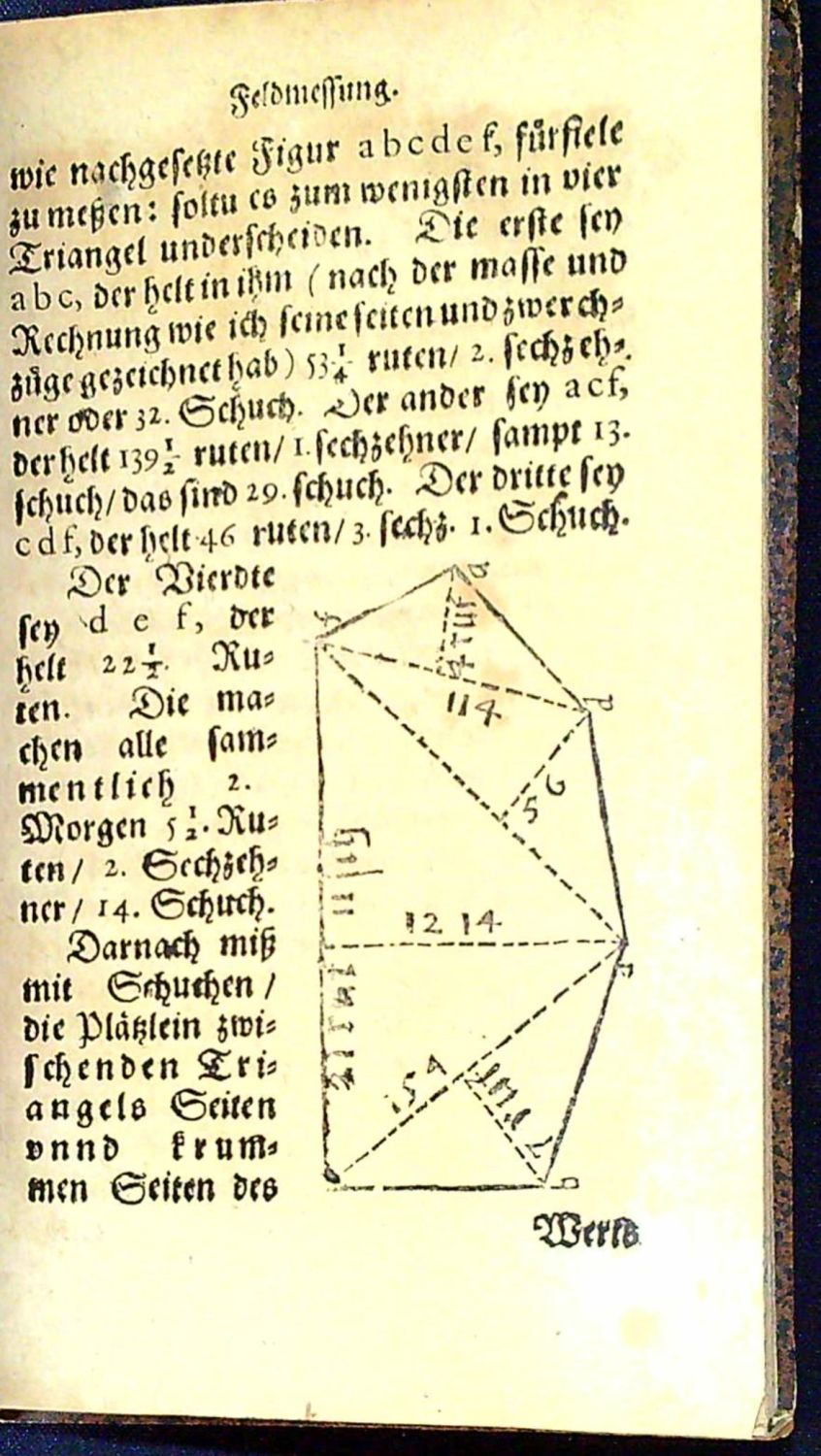 Bewerte Feldmessung{ und Theilung: mit vorgehender Verzeichnuß der Mängel/ so bißhir darin gewesen: richtig/ kurtz/ zum Brauch bequemb/ gestelt/ Vom Pfarherrn zu Langeforch/ an den Stattschreiber zu Breitenaw/ Erstlichen getruckt zu Heidelberg/ Im Jahr 1578. nach der hand zu Straßburg/ A. 1628. Anjetzo auff= neue wieder auffgelegt und getruckt.