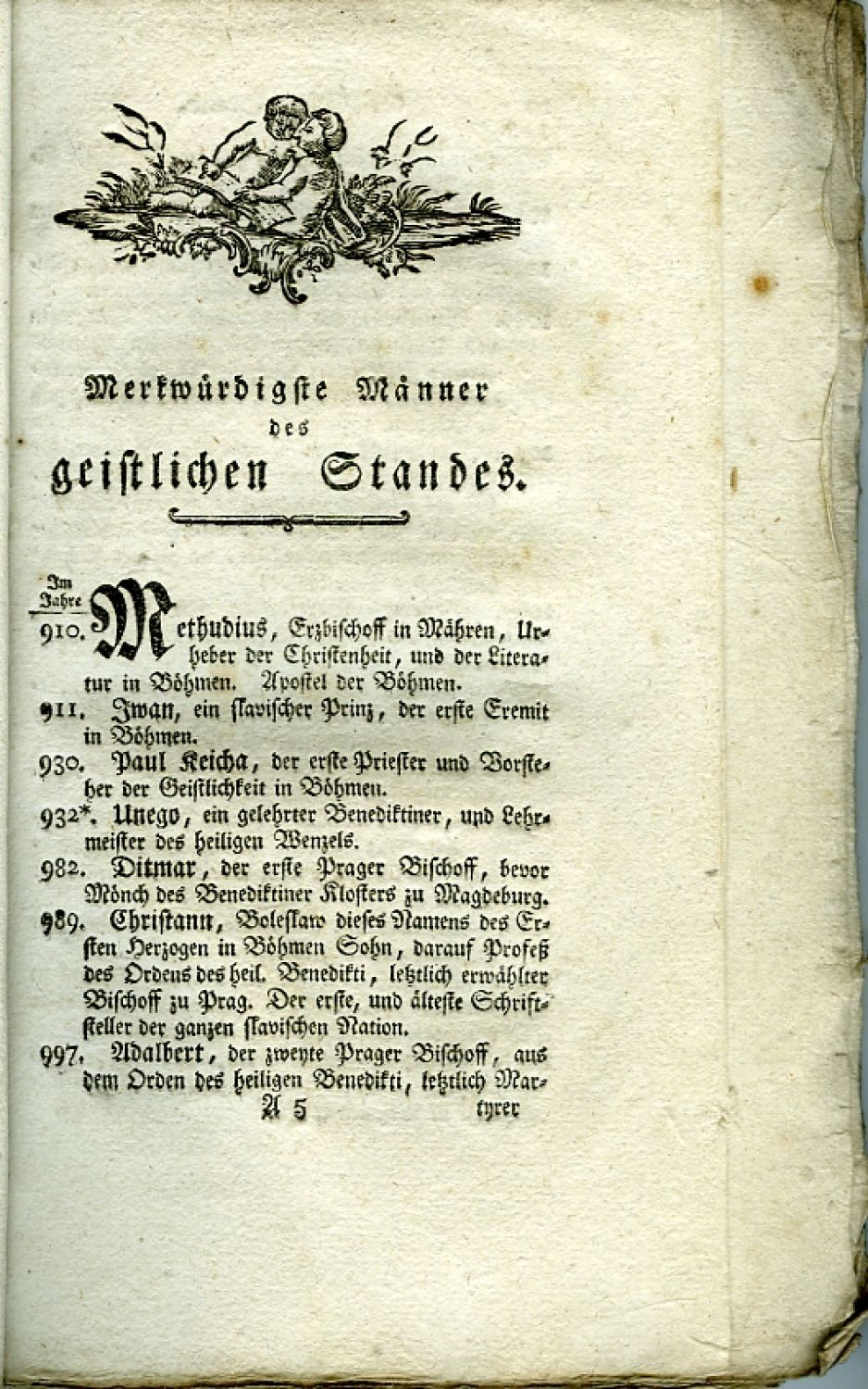 Chronologisches Verzeichniß der berühmtesten Männer Böhmens, aus dem Mittel der hochlöblichen Stäanden besagten Königreichs, als eine Ankündigung des nächstens darauf Werks, in welchem die Gedächtniß dieser würdigen Patrioten umständlich der Nachwelt überschreiben werden wird, von ...