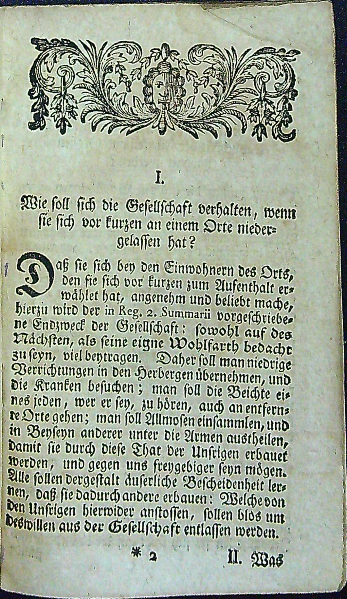 Dobová pap. obálka, ve spodní třetině hřbetu natržená. Přes hřbet přelepeny pap. štítky, na přední straně obálky rkp. přípis černým perem z 19. století s názvem. Na předním přídeští nalepeno mědiryt. ex libris Gustava Partheye, na tit. listu staré razítko zednářské lóže "Loge zu den drei Weltkugeln". Papír lehce zahnědlý, knižní blok při horním vnějším okraji mírně pomačkaný, na přední i zadní předsádce při horním okraji světle hnědé mapy způsobené vlhkostí.