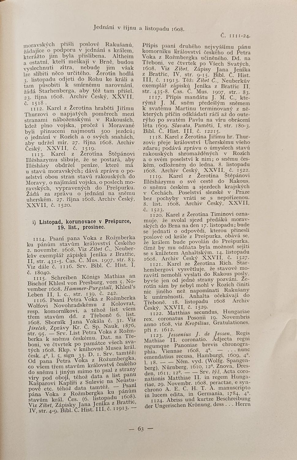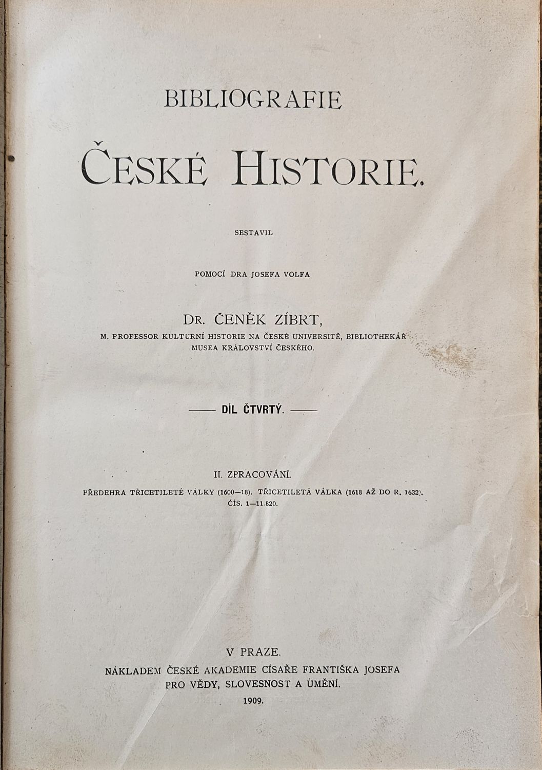 Díl 1.: I. Knihověda a část všeobecná. II. Pomocné vědy. Díl 2.: I. Prameny. II. Zpracování do r. 1419. Díl 3.-5.: Zpracování do r. 1679. - Dobové jednotné vazby s kartonovými deskami potaženými olejovým papírem, kožené hřbety a nárožnice, ve hřbetu tlačený a zlacený název, stříkané ořízky. Na předních přídeštích nalepená vlastnická ex libris. 1. "Ex libris Archisterii Břevnoviensis", . "Ex bibliotheca Dr. Pavel R. Pokorný". Vazby lehce ohmatané a místy mírně odřené.
