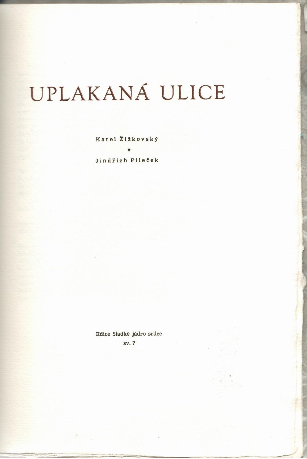 Původní vazba od Františka Jelínka z Prahy. V tiráži podpis Karla Žižkovského. Kniha vyšla jako 7. svazek edice Sladké jádro srdce.