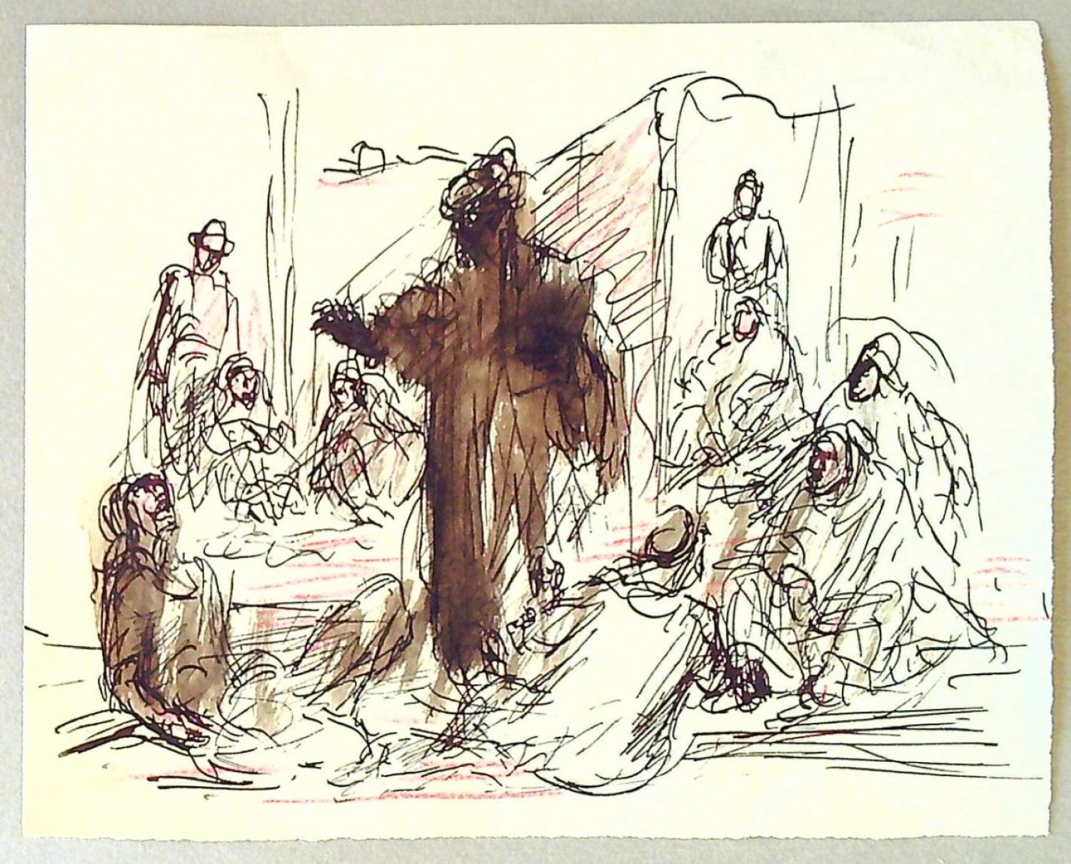 Nesignovaná lavírovaná kresba tuší na listu 118 x 142 mm, namontovaného v horních rozích na tuhý papír. Kresba pochází ze sbírky významného sběratele Dr. Čeřovského z Prahy, na rubu tuhého papíru je jeho sběratelské razítko.