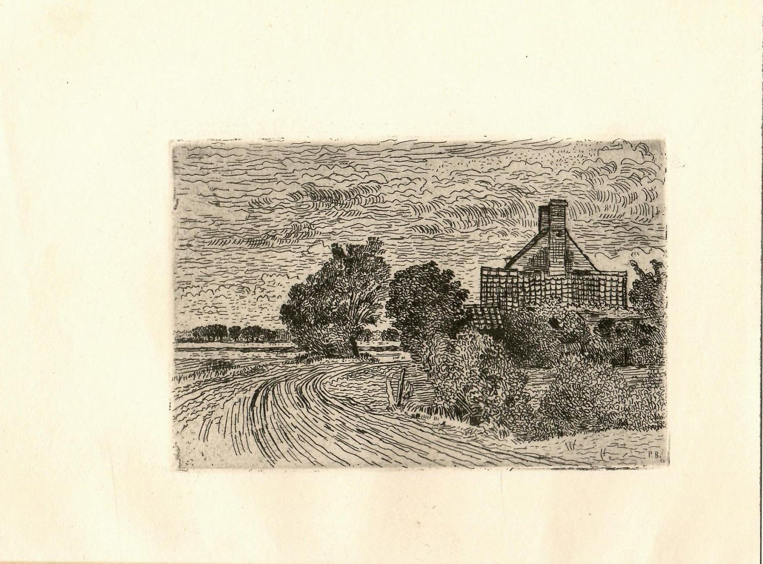 Původní lept, signováno v desce P.B. Volný list.