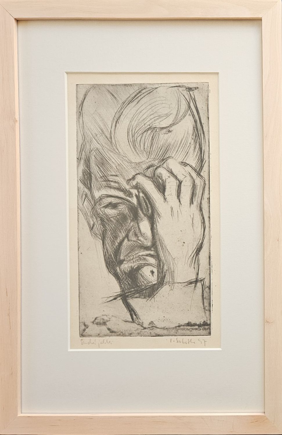 Suchá jehla autorem vpravo dole pod deskou podepsaná a datovaná, vlevo dole autorem napsána technika. Práce je adjustována v hluboké paspartě a zarámována ve světlém přírodním rámu z olše.
