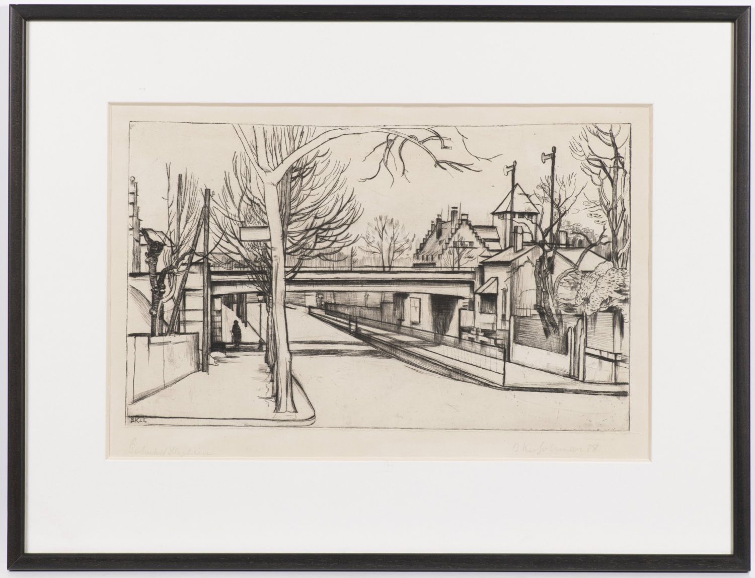 Původní suchá jehla, autorem vlevo dole v desce monogramem signovaná a datovaná. Vpravo dole autorova signatura a datace tužkou, vlevo dole název. Reprodukováno v monografii "Fritz Löffler: Kretzschmar" (č. 87) a také v "Bernhard Kretzschmar - Werkverzeichnis der Druckgrafik" na straně 175 pod inventárním číslem R 178. Zarámováno v černém jednoduchém rámu o rozměru 462 x 610 mm v hluboké bílé paspartě.