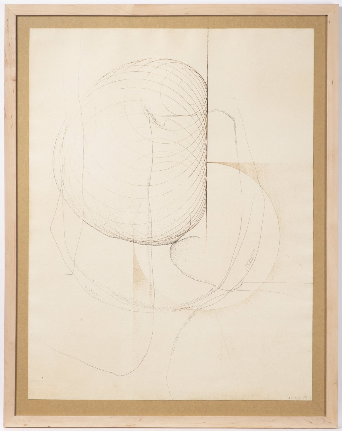 Malba tuší a rudkou, vpravo dole tužkou autorem monogramem signovaná a datovaná "8.2.69". Zarámováno ve světlém přírodním rámu o rozměru 735 x 585 mm. Provenience: práce byla zakoupena od Jana Koblasy, který spravoval Valentovu pozůstalost.