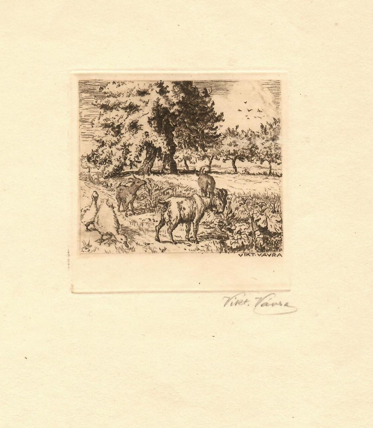 Lept o rozměru desky 88 x 88 mm. Autorem signováno v desce i tužkou při pravém spodním okraji.