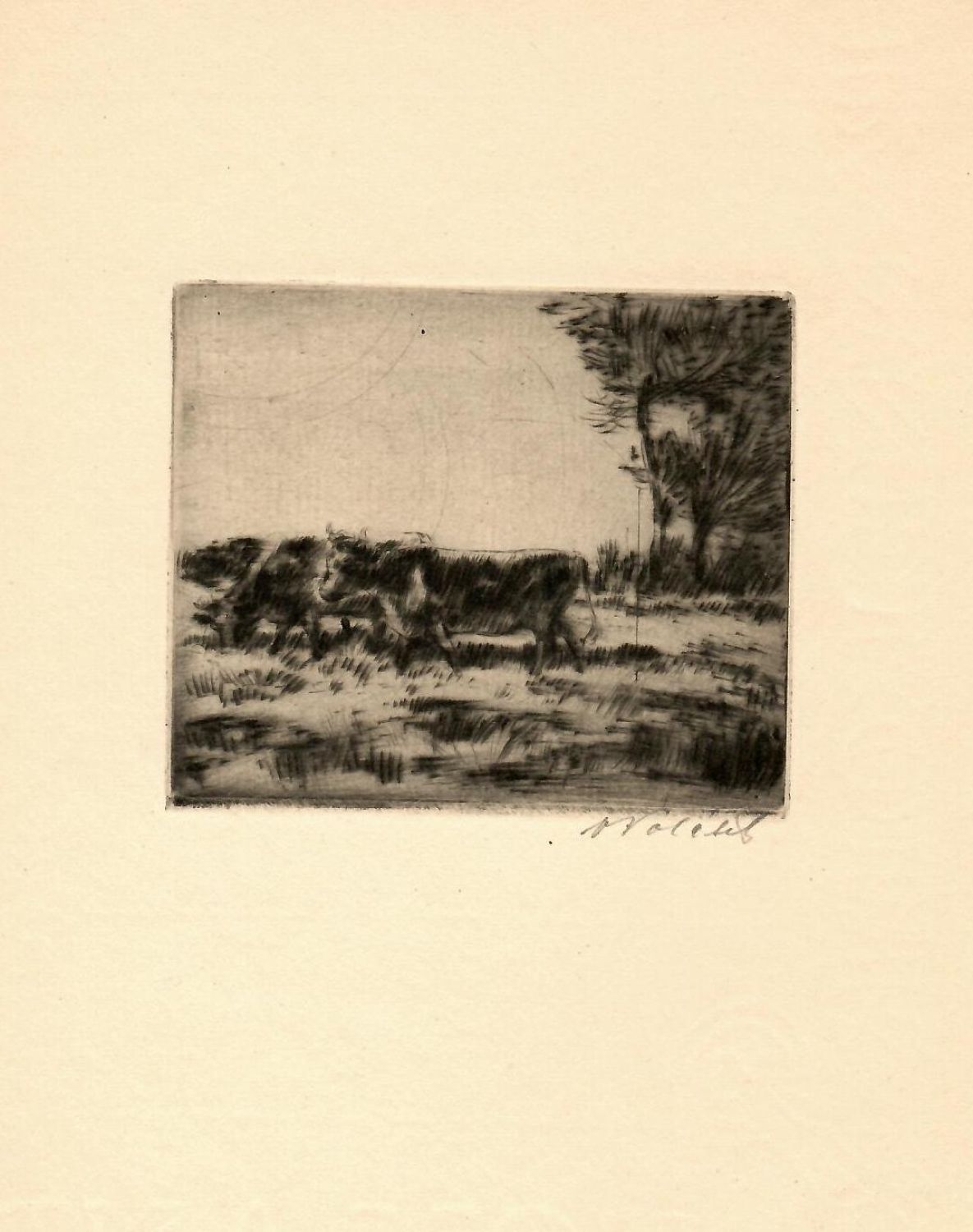 Suchá jehla o rozměru tisku 75 x 88 mm. Autorem při pravém spodním okraji tisku tužkou signováno.
