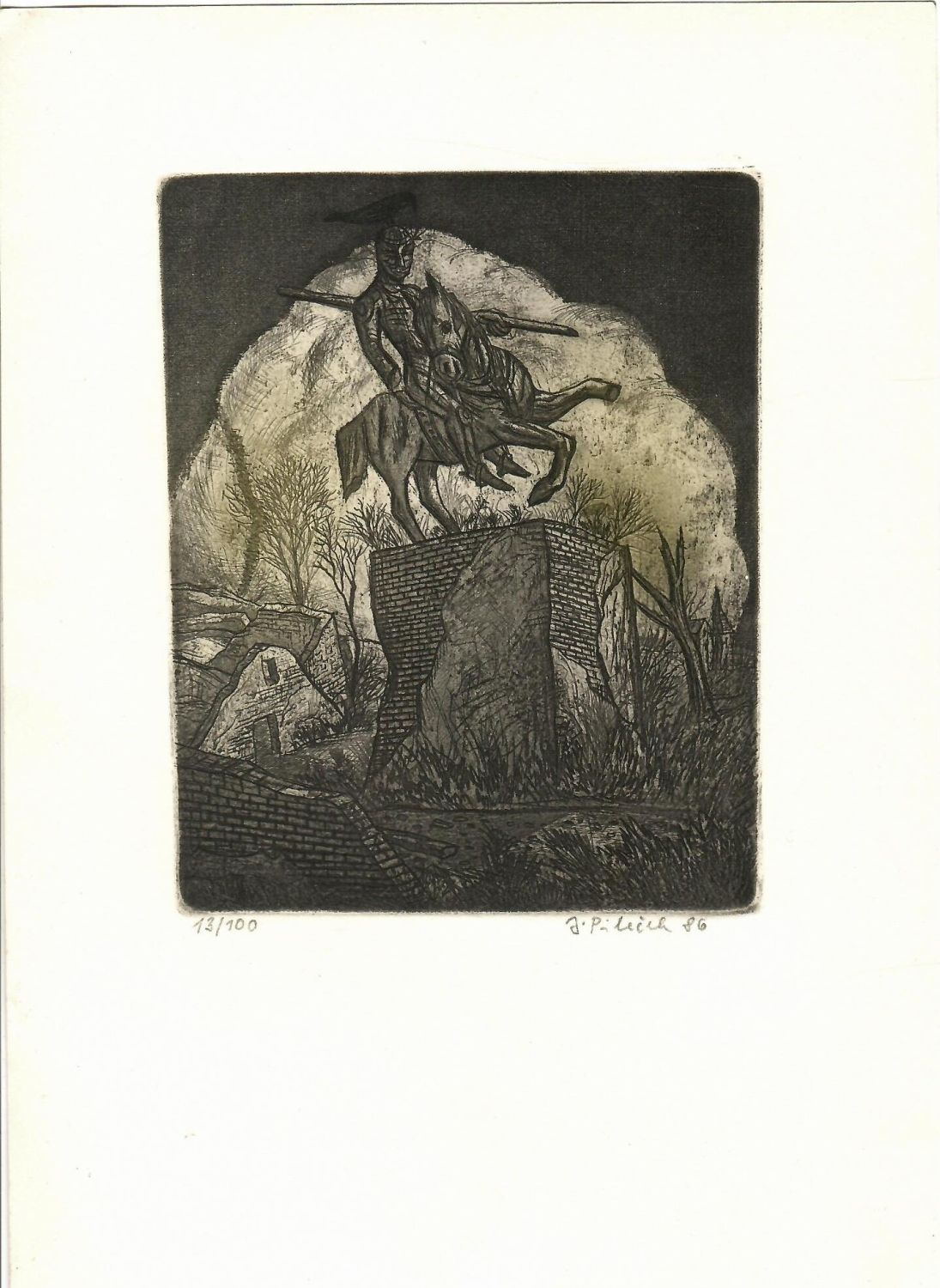 Lept kombinovaný s akvatintou, volný list, vpravo dole pod deskou autorem tužkou podepsaný a datovaný, vlevo dole číslovaný 13/100.