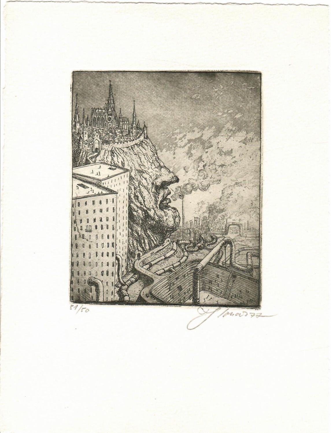 Lept o rozměru tisku 130 x 107 mm. Při levém spodním okraji tisku tužkou číslováno 31/50, při pravém spodním rohu autorem signováno a datováno.