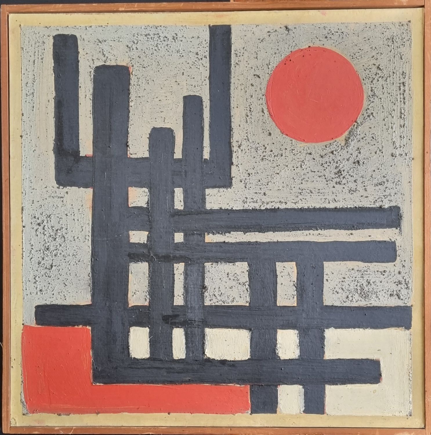Malba temperou v kombinaci s lepeným pískem. Rámovaná sololitová deska. Nesignováno.