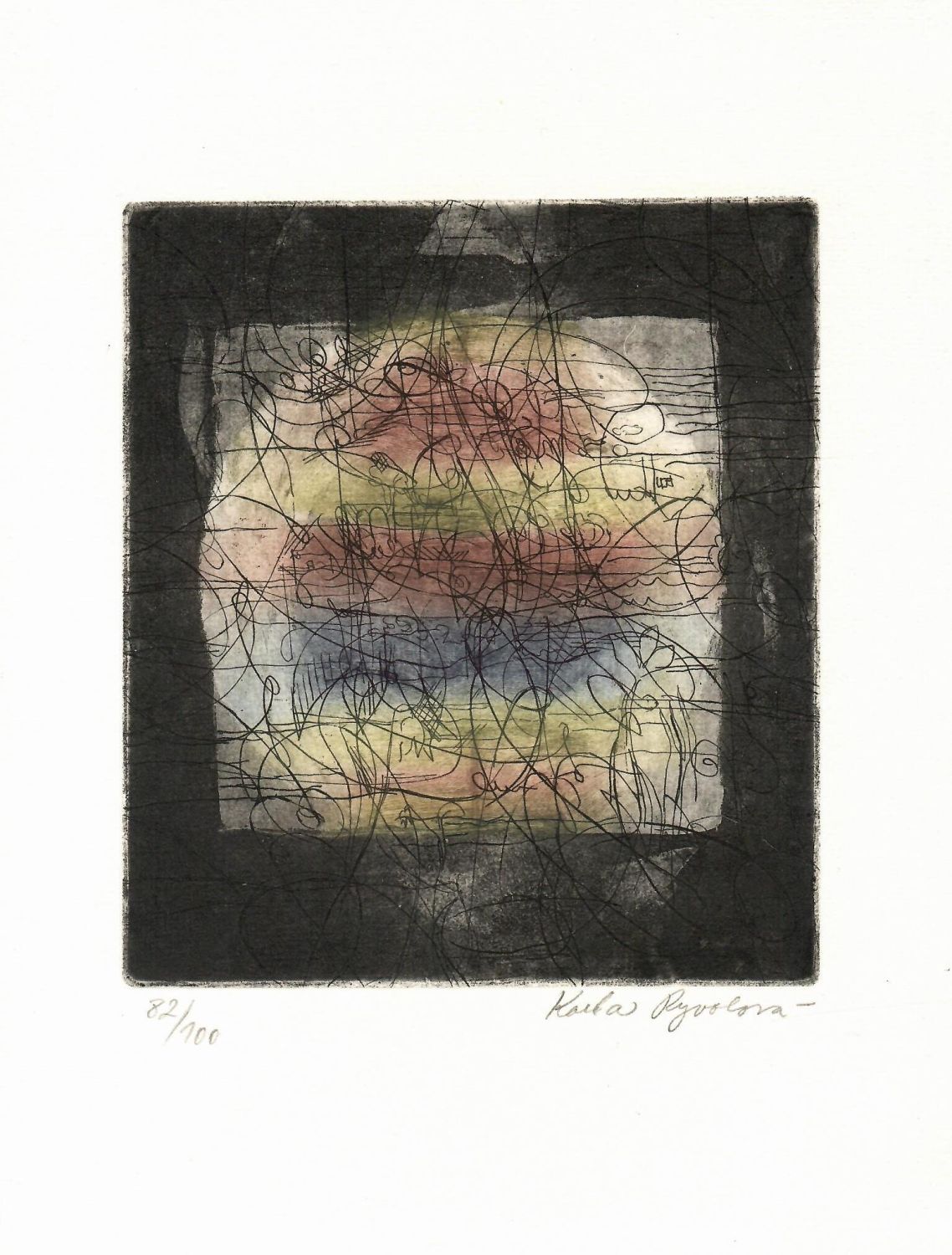Lept s akvatintou, při pravém spodním okraji tisku autorkou podepsaný, při levém spodním okraji tisku připsáno číslo 82/100. Volný list.