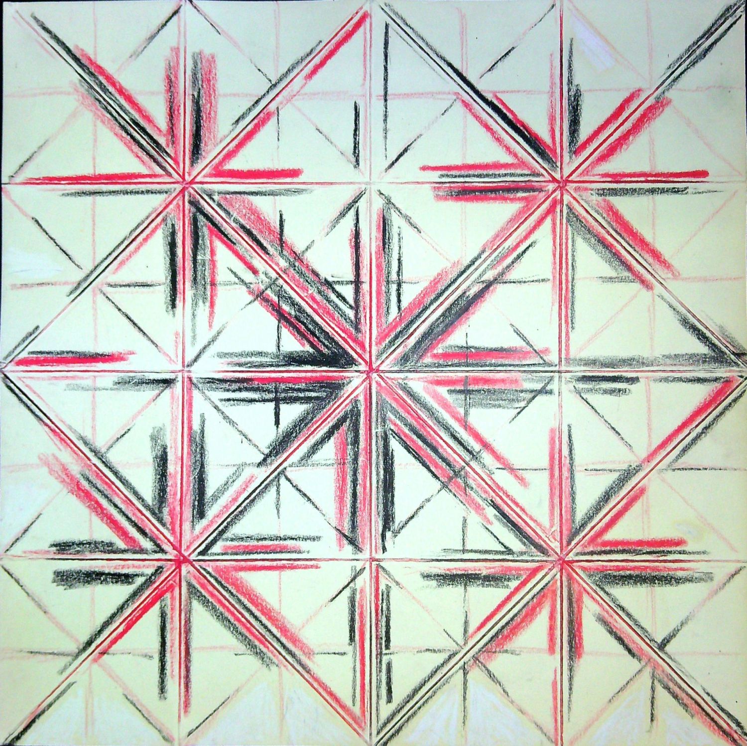 Monostruktura s voskovými pastelkami na papíře, nesignováno. Provenience: práce byla zakoupena od autora.