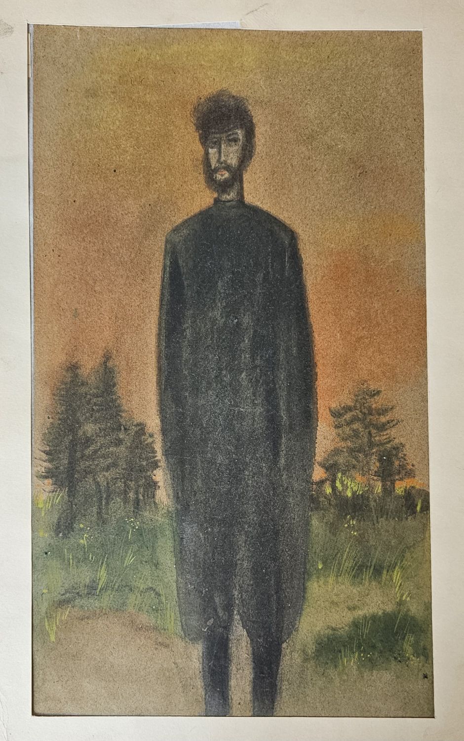 Barevný pastel s tužkou a akvarelem, autorem nepodepsaný, volný list. Pravděpodobně nerealizovaná ilustrace k neurčené, ale jistě veselé ruské klasice.