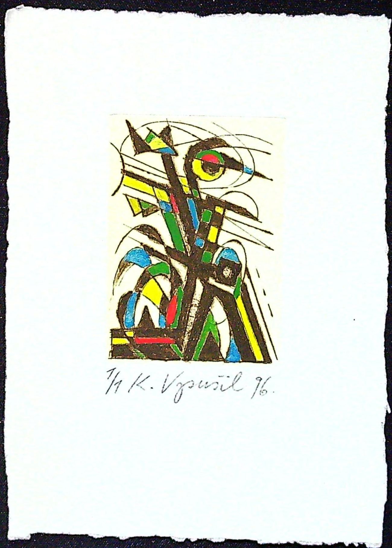 Kolorovaný lept autorem pod deskou číslovaný 1/1, podepsaný a datovaný, volný list.