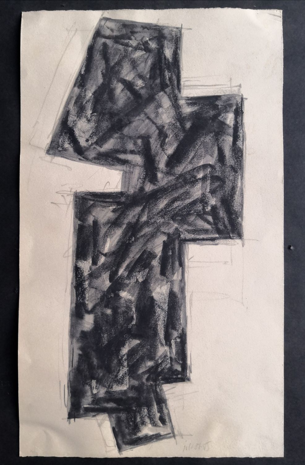Kresba tužkou a uhlem, lavírováno tuší. Při spodním okraji autorem tužkou signováno. Kresba je v rozích uchycena k podkladovému papíru.
