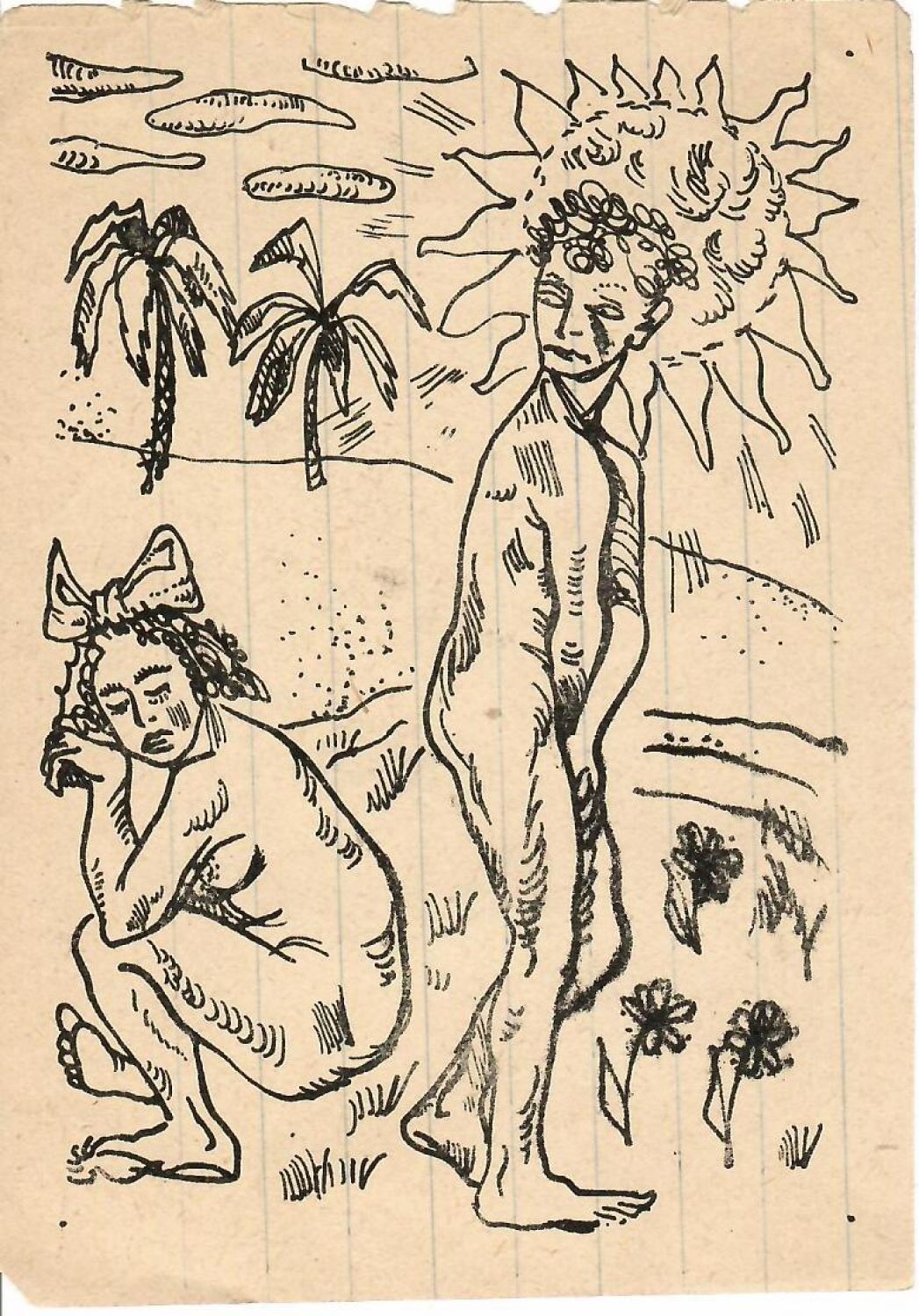 Algrafie o rozměru 125 x 85 mm tištěná na list linkovaného papíru (140 x 99 mm), na rubu tužkou podpis autora. V Liter. archivu PNP je uložen dopis J. Dočekala datovaný 22.3.1951 psaný na rubu sedmi algrafií, tato je jiným otiskem jedné z nich.