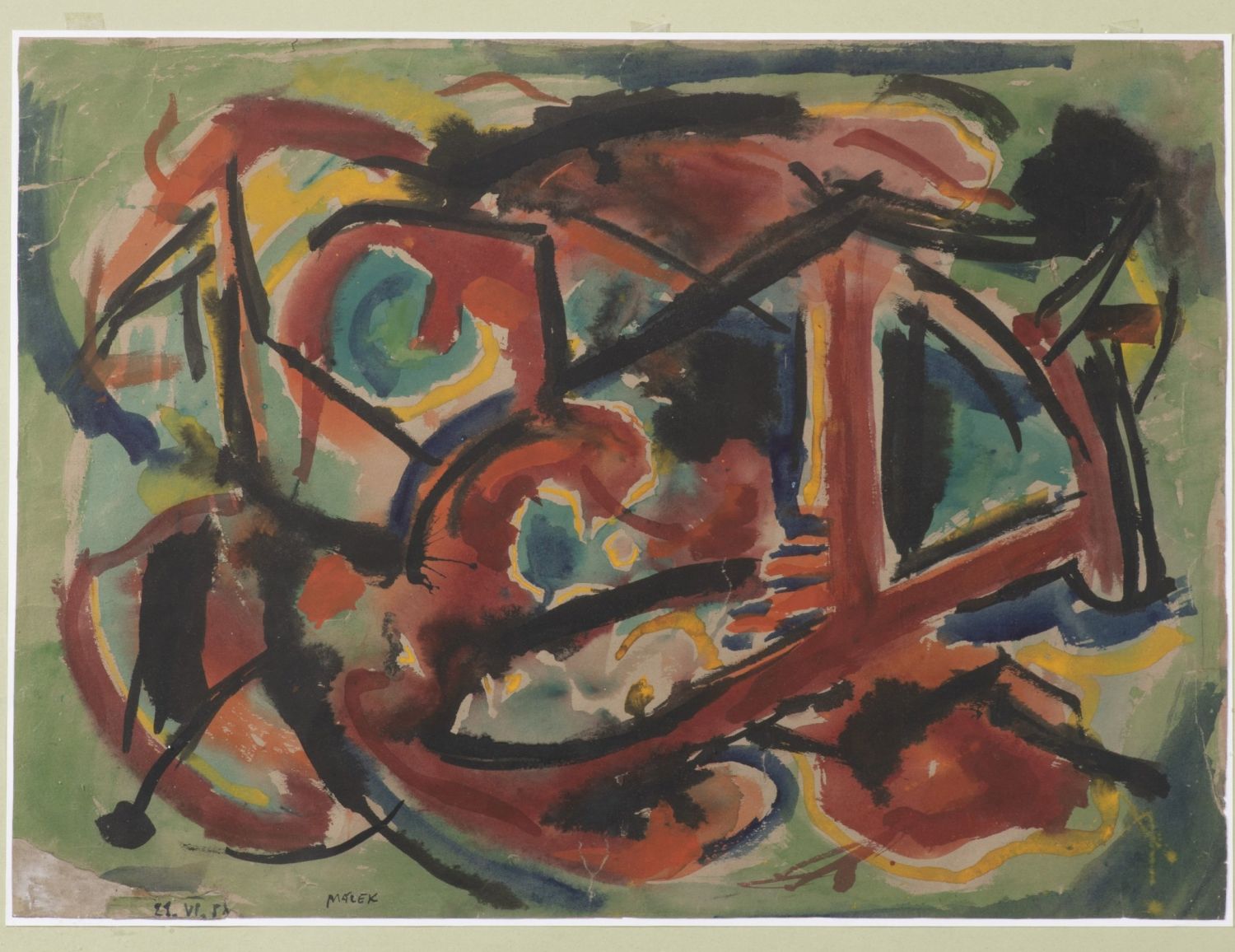 Akvarel s tuší na papíře, autorem vlevo dole datovaný ("21. VI. 58") a podepsaný. Papír při okrajích místy zkrabatělý. Provenience: práce byla zakoupena přímo od autora.