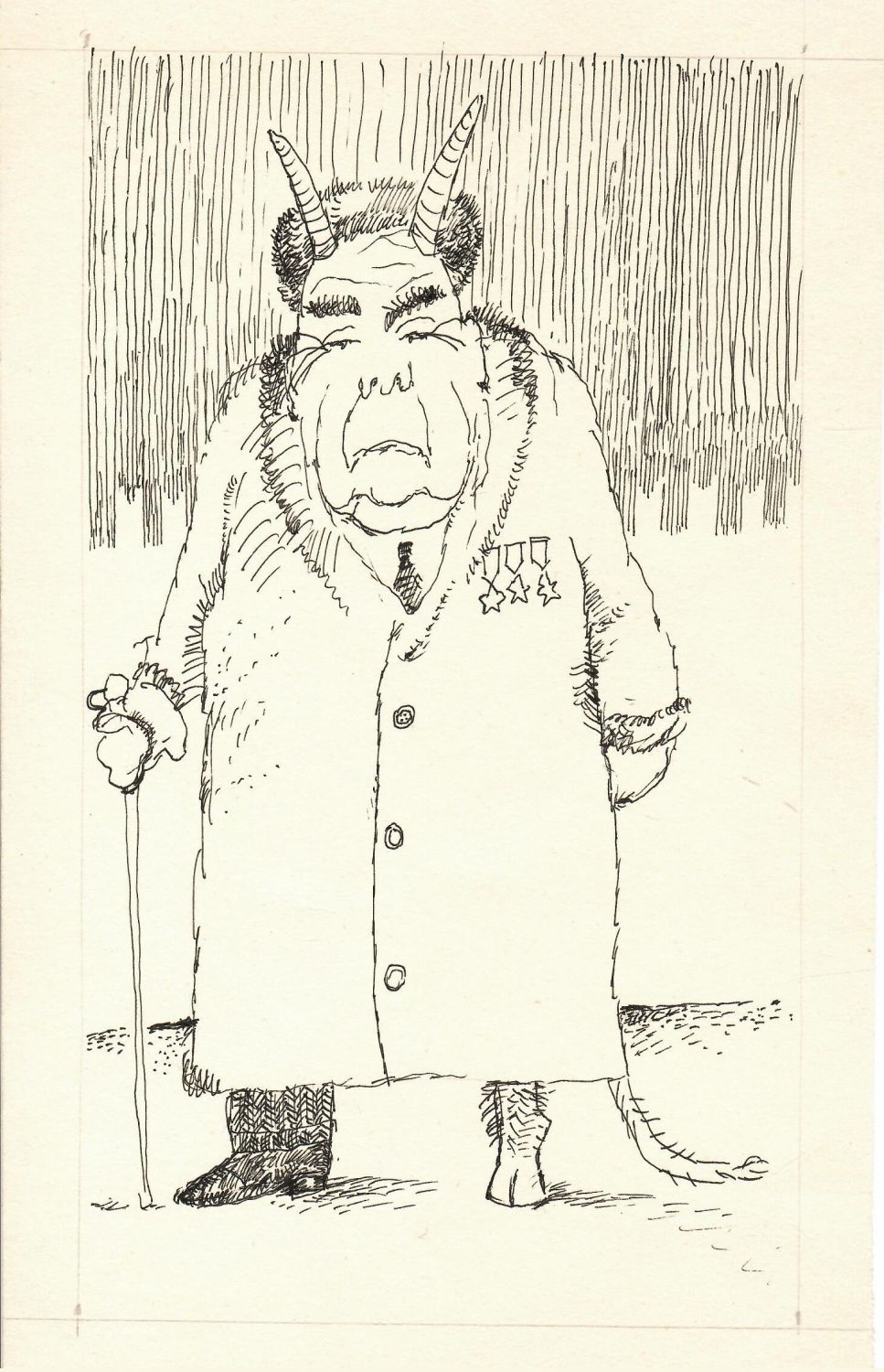 Kresba černou tuší, nesignováno. Volný list.